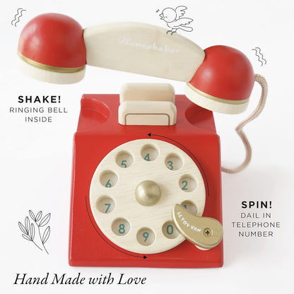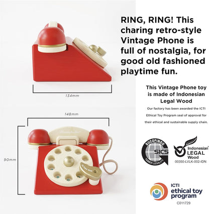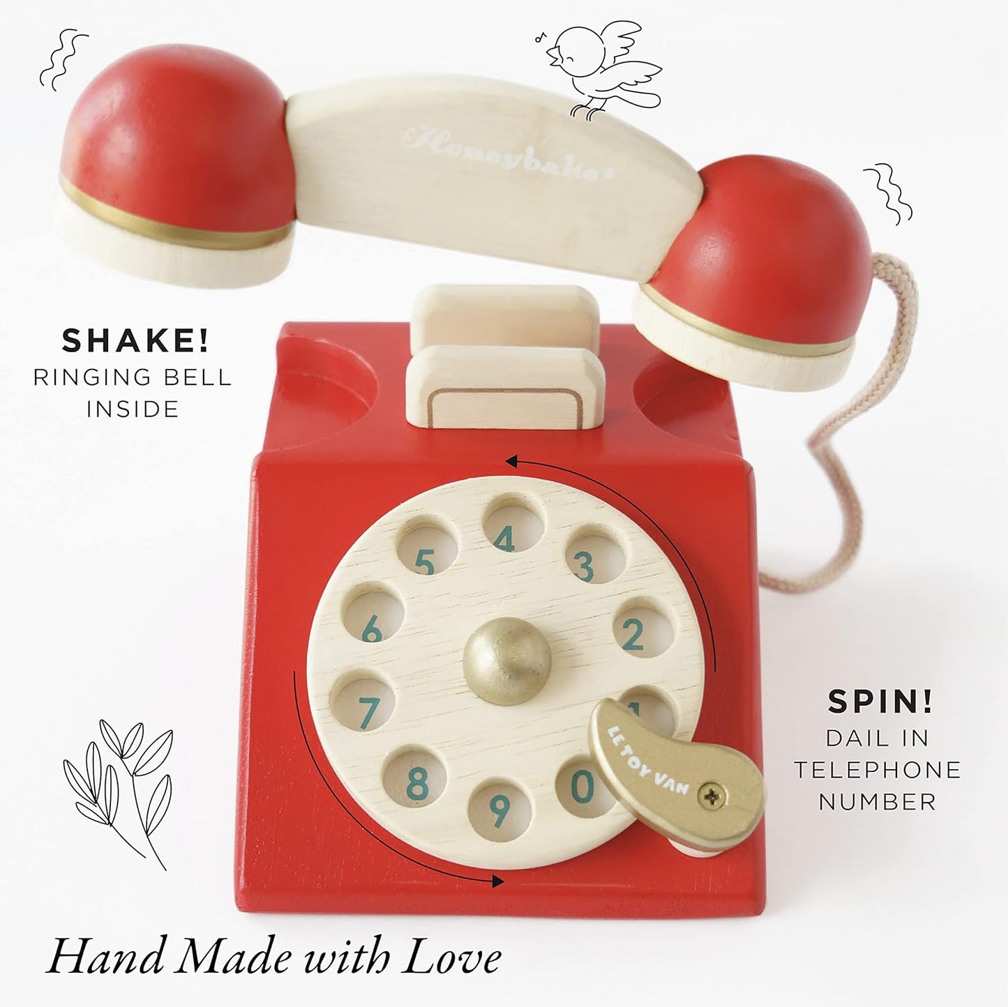 Le Toy Van - Brinquedo de dramatização de telefone de madeira vintage | Meninos ou meninas fingem brincar com brinquedo e comida - para maiores de 3 anos