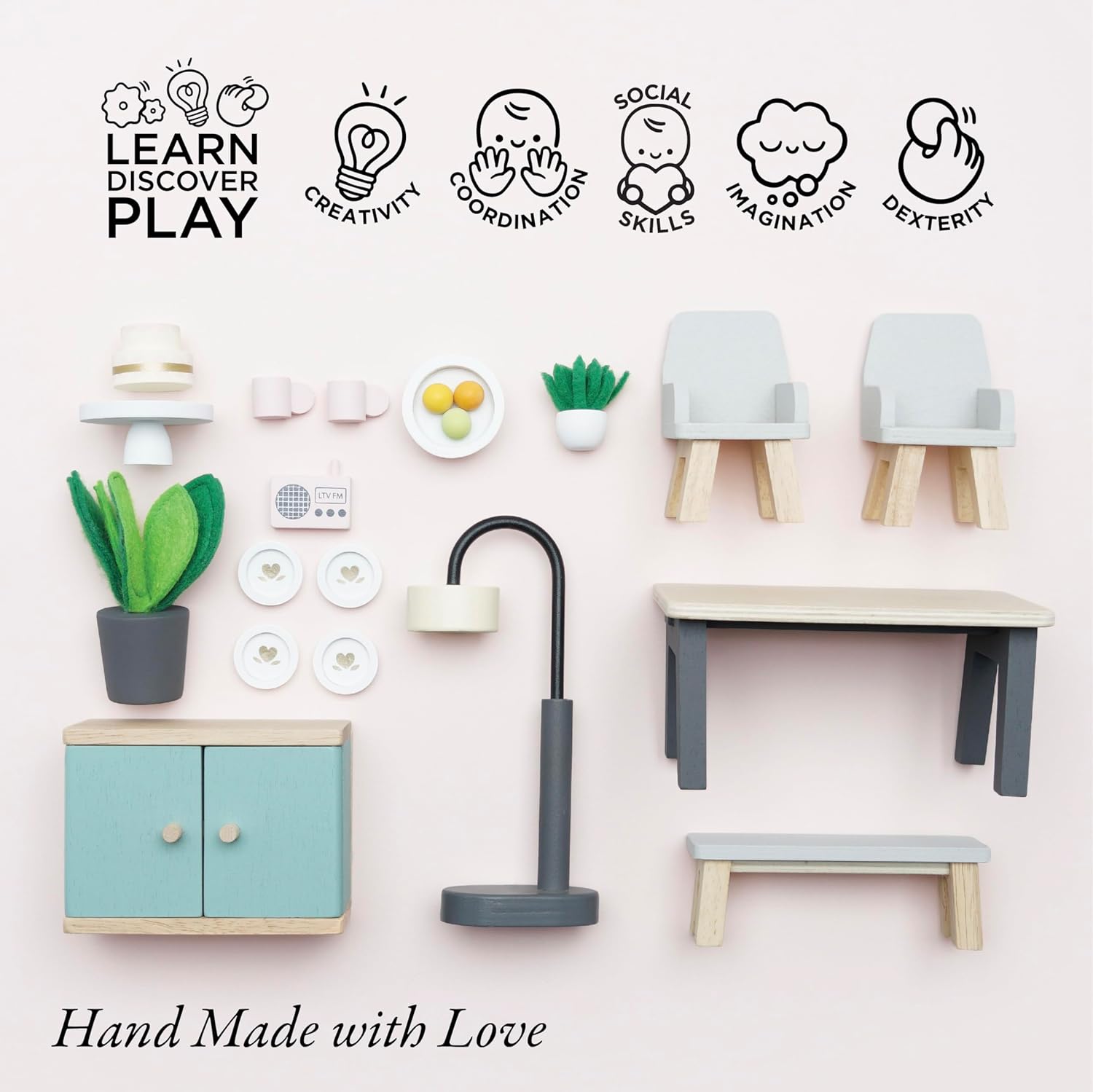 Le Toy Van- Conjunto de jogos de acessórios para casas de bonecas para sala de jantar Daisylane de madeira para casas de bonecas | Conjuntos de móveis para casas de bonecas - adequados para maiores de 3 anos