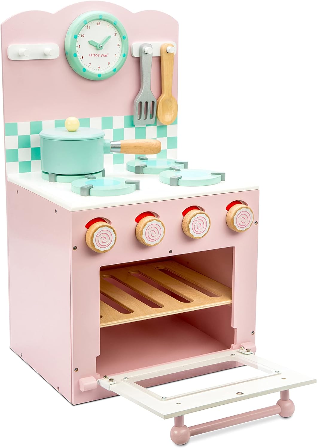 Le Toy Van - Conjunto educacional de forno e fogão de madeira para bolo de mel rosa brinquedo de brincar de cozinha | Acessórios de cozinha para brinquedos de dramatização para meninos e meninas