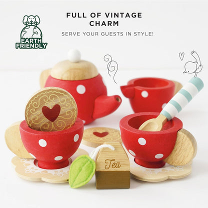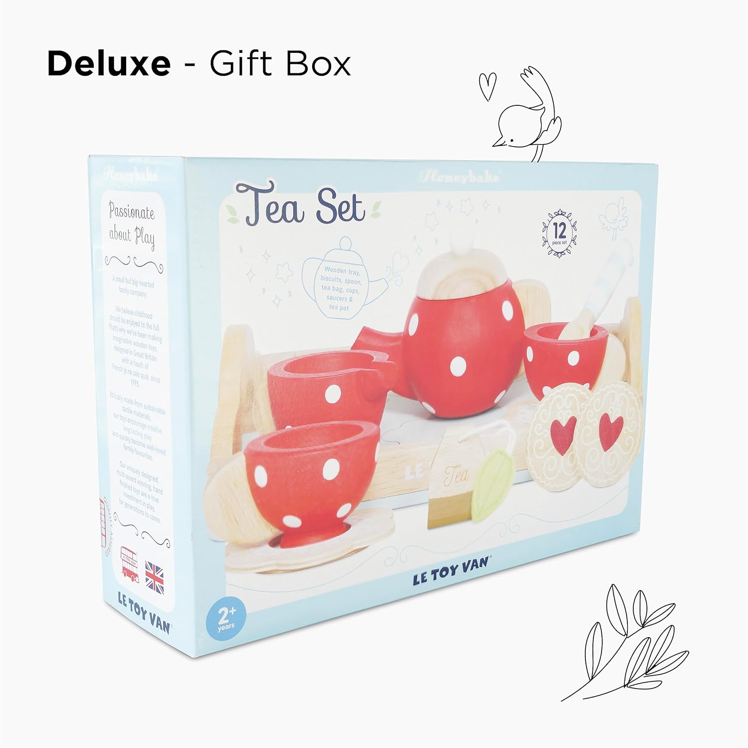 Le Toy Van - Jogo de chá infantil de madeira para bolo de mel fingir brincar de bule, bandeja, xícaras e pires | Brinquedo de dramatização para chá da tarde