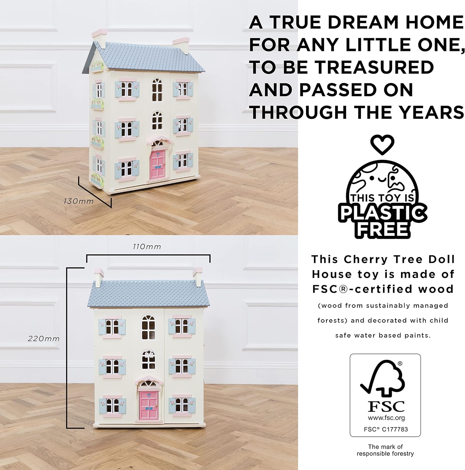 Le Toy Van - Salão da Cerejeira Grande Casa de Bonecas de Madeira | Conjunto de jogos de casa de bonecas de madeira de 4 andares - adequado para maiores de 3 anos