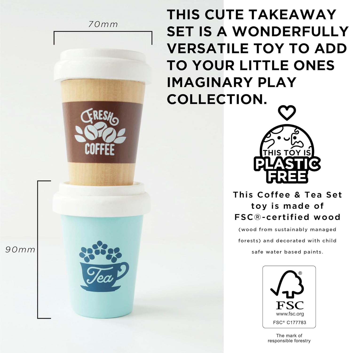 - COLEÇÃO HONEYBAKE: O conjunto de xícaras de café e chá para viagem é dimensionado para o tamanho da coleção de dramatizações Honeybake da Le Toy Van. A coleção inclui: batedeira de madeira, conjunto de forno e fogão rosa, panelas e frigideiras e a brincadeira de faz de conta Farmhouse Wooden Kitchen