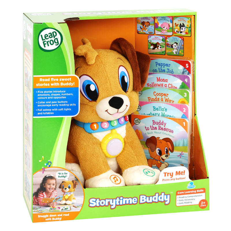 Escolha entre cinco livros sobre Buddy e seus amigos Bella, Cooper, Mona e Pepper e Buddy lerá cada um. Leitores iniciantes podem ler enquanto aprendem sobre emoções, formas, números, cores e opostos. As crianças também podem interagir com Buddy respondendo a perguntas de compreensão de leitura e cantando canções alegres de aprendizado.