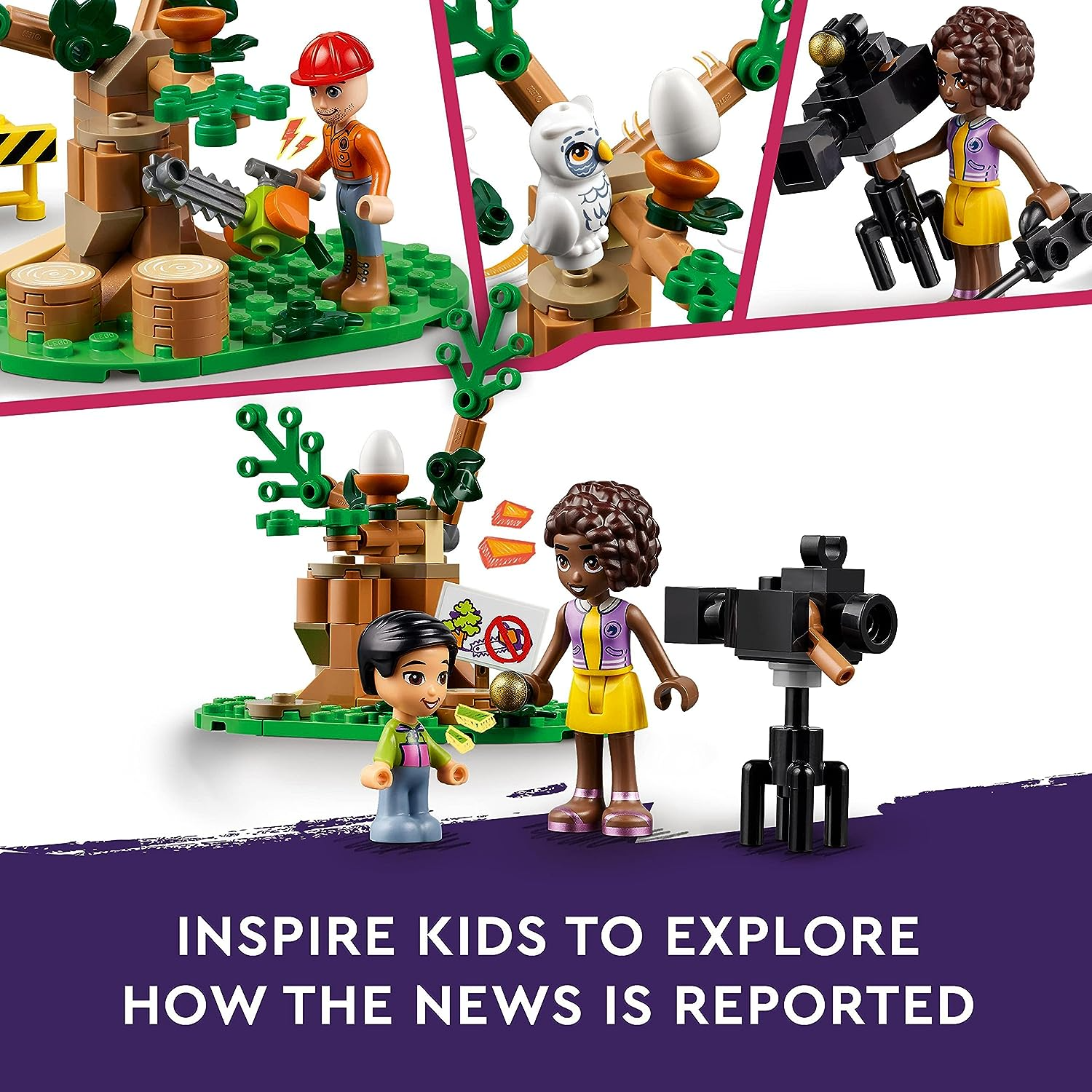 LEGO 41749 Friends Newsroom Van, Animal Rescue Playset, Finja filmar e reportar notícias com caminhão de brinquedo, figura de coruja e miniboneca Aliya, presente para meninas, meninos e crianças de 6 anos ou mais