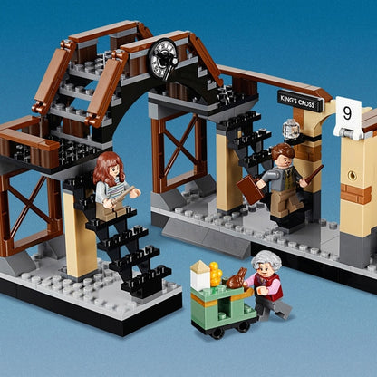 Crie a plataforma oculta 9 e ¾ na estação King's Cross, completa com uma ponte, um relógio e uma entrada móvel de parede de tijolos que se abre apenas para aqueles que sabem que ela está lá. O Profeta Diário e um pôster de Procurado para Sirius Black definiram o cenário para um ano de aventuras bruxas.