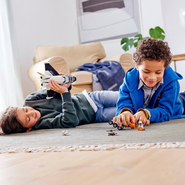 Construa e inspire a próxima geração de astronautas com foguetes e veículos LEGO Space da NASA - Let’s Go! Este conjunto de brinquedos LEGO City 60226 Mars Research Shuttle apresenta um ônibus espacial e veículos, além de um cenário da missão de Marte construído com um símbolo secreto. As crianças podem decolar na nave espacial, pilotar o rover de Marte sobre a superfície para fazer pesquisas e recuperar os geodos, depois carregá-los no drone de armazenamento e enviá-lo para o compartimento de carga do ônibus espacial para outra missão bem-sucedida em Marte!