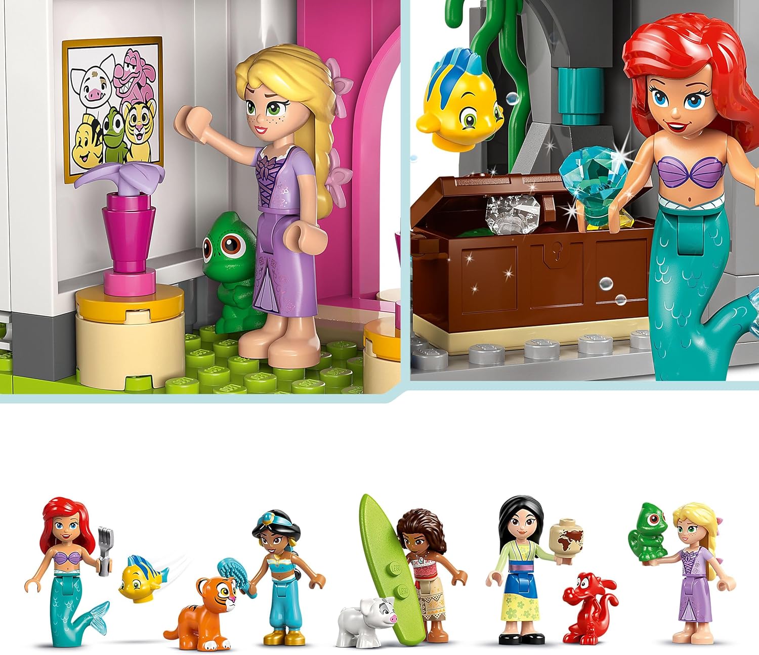LEGO ǀ Castelo das Princesas Disney e Animais de Estimação Reais - Brinquedo Modular com Interior Detalhado - Inclui Mini Bonecas da Ariel, Rapunzel, Mulan, Jasmine e Moana com seus Animais de Estimação - Presente para Meninas a partir de 6 Anos - 43267