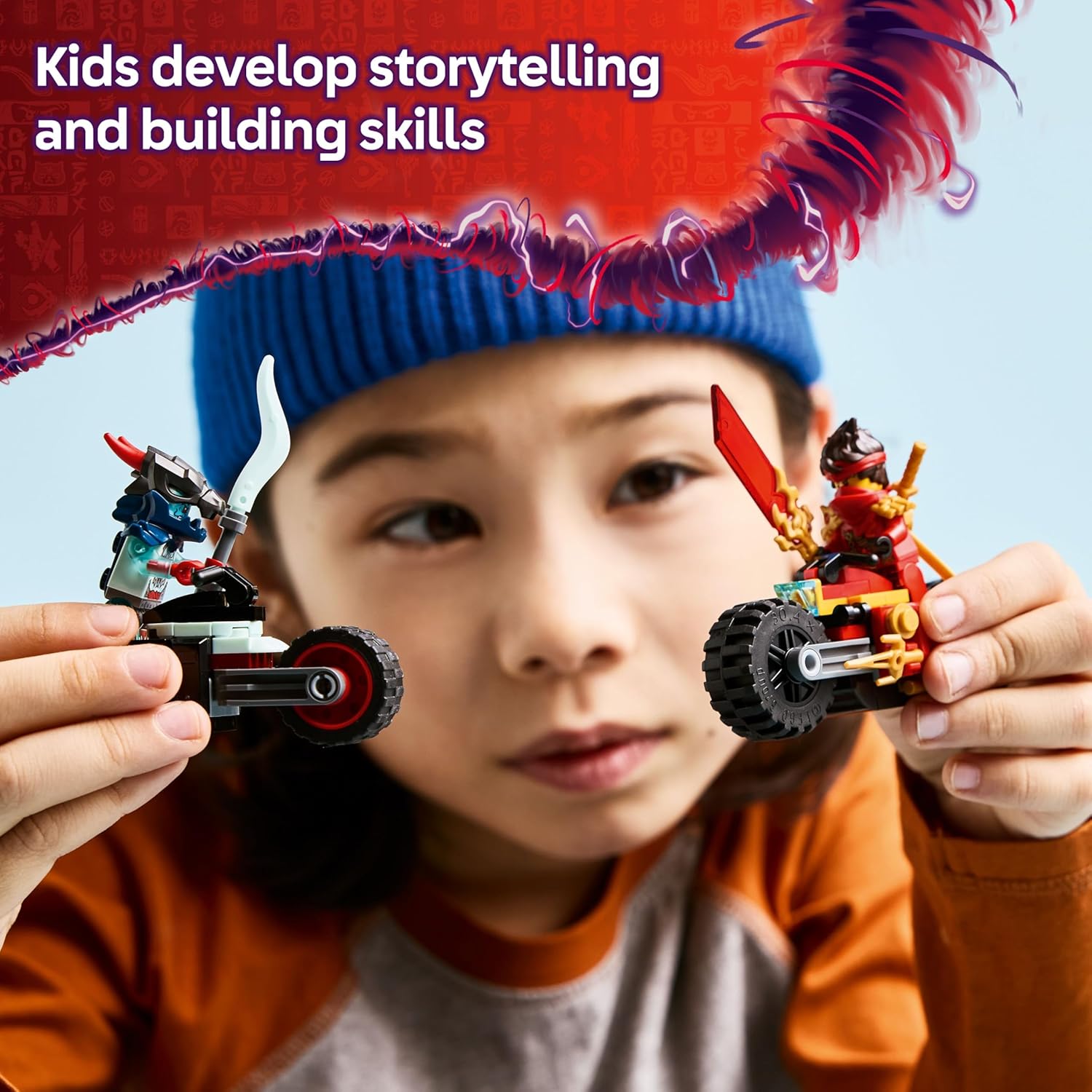 LEGO Conjunto de Corrida de Motocicleta NINJAGO Kai - 2 Brinquedos de Moto Ninja com Rodas Giratórias e 2 Minifiguras com Acessórios de Armas - Presente para Meninos a partir de 6 Anos e Fãs de Dragons Rising - 71838