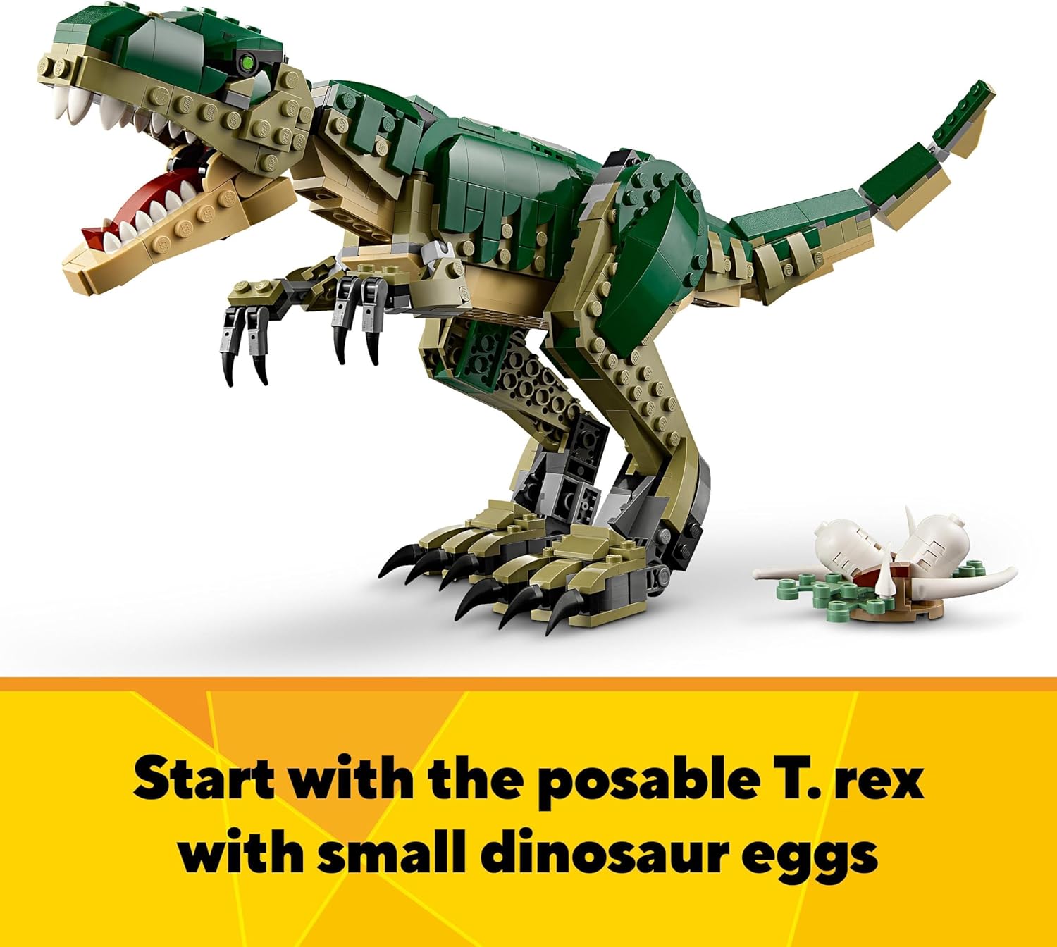 LEGO Criador 3 em 1 T. rex para Triceratops para brinquedos de pterodáctilo, figuras de dinossauros para meninos e meninas de 9 anos ou mais, conjunto de construção de modelo de brinquedo Dino ajustável, ideia