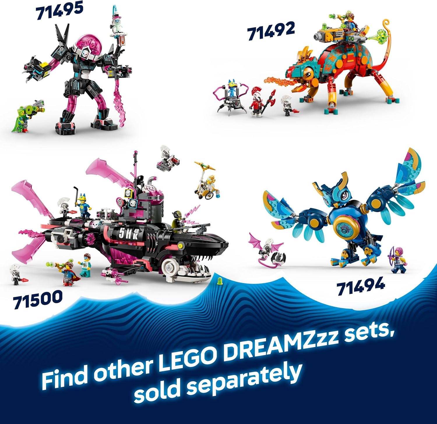 - Linha LEGO DREAMZzz – Mantenha a brincadeira imaginativa com outros brinquedos de construção LEGO DREAMZzz (vendidos separadamente), incluindo conjuntos criativos de animais, brinquedos mecânicos e construções interativas.