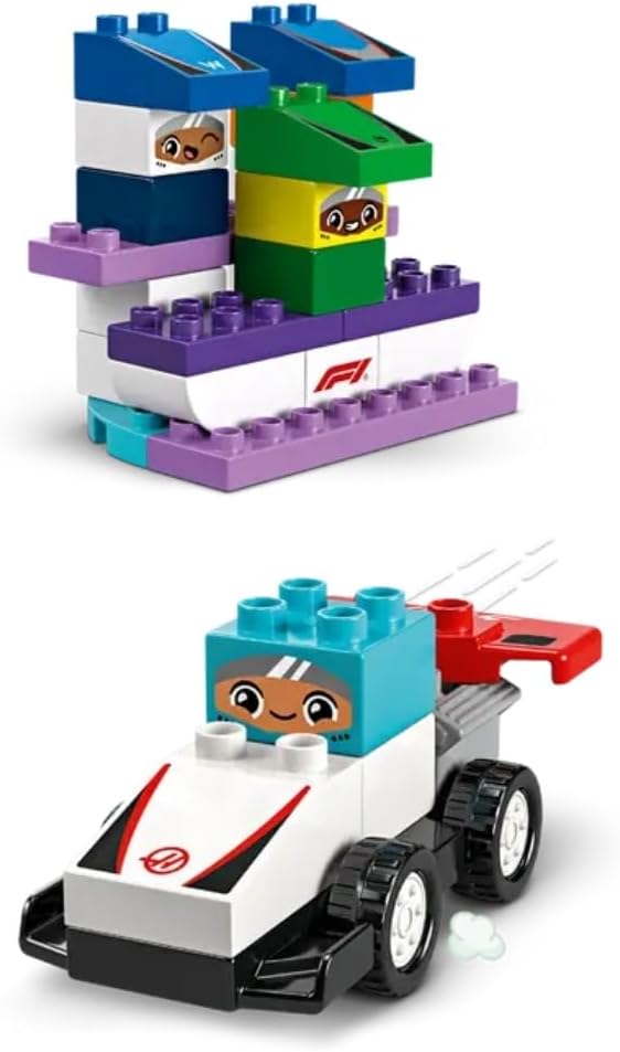 LEGO DUPLO Town F1 Team Race Cars & Drivers Building Toy para brincadeiras imaginativas, presente de aniversário de Fórmula 1 para crianças de 2 anos ou mais, meninos e meninas, ajuda a desenvolver habilidades motoras finas