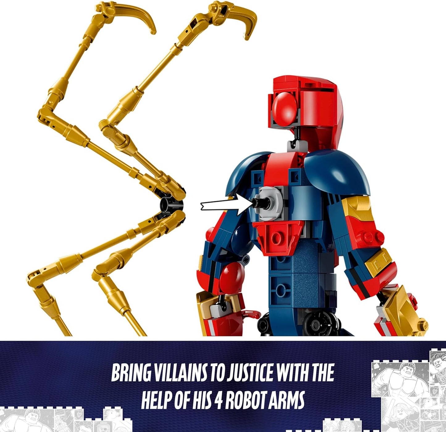 - Detalhes precisos do filme – Vestindo uma armadura de alta tecnologia do Homem-Aranha de Ferro criada por Tony Stark, a figura incorpora 4 braços extras totalmente articulados