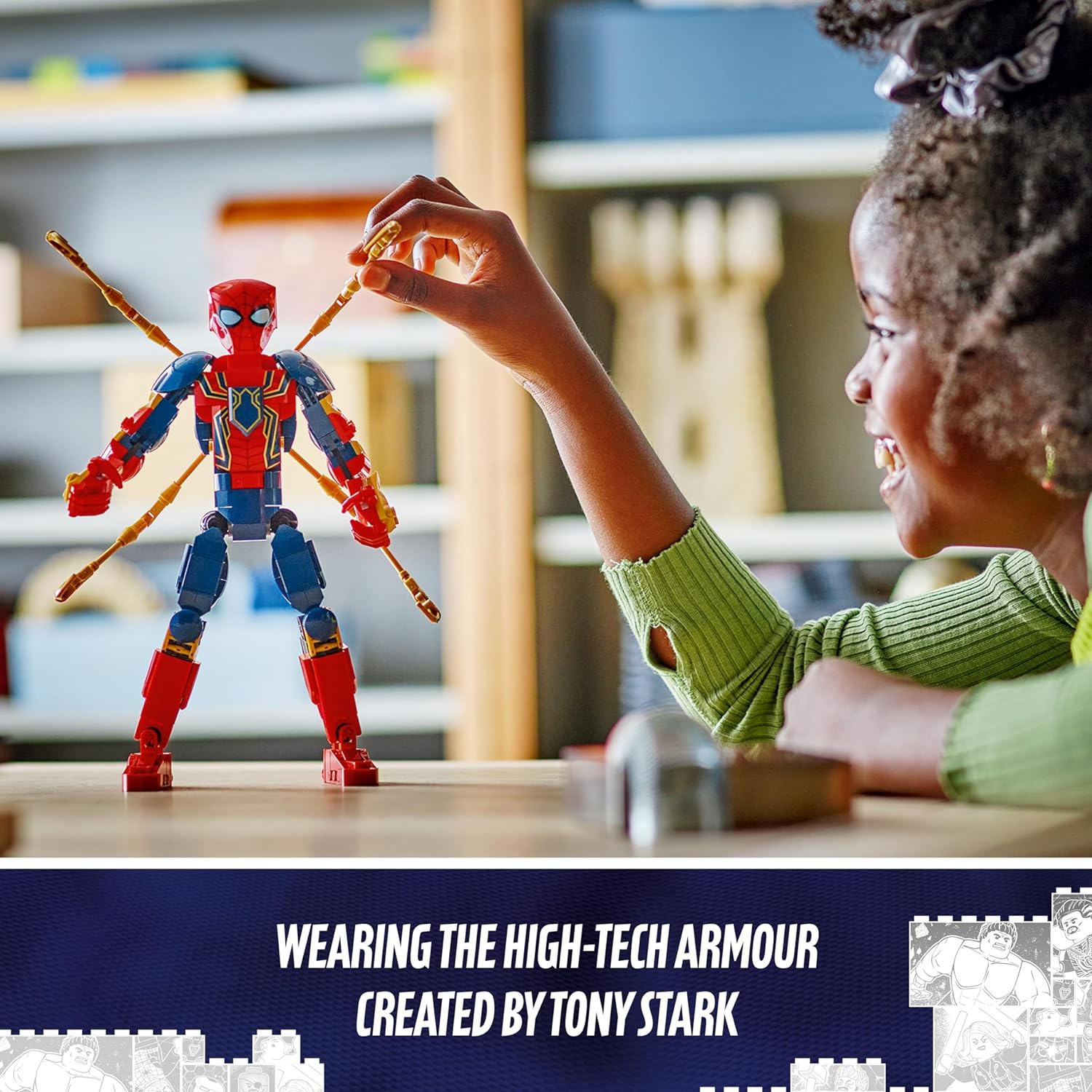 - Brinquedos de dramatização – A figura de ação do Homem-Aranha de Ferro totalmente articulada tem articulações móveis de ombros, braços, quadris e pernas para inspirar brincadeiras imaginativas