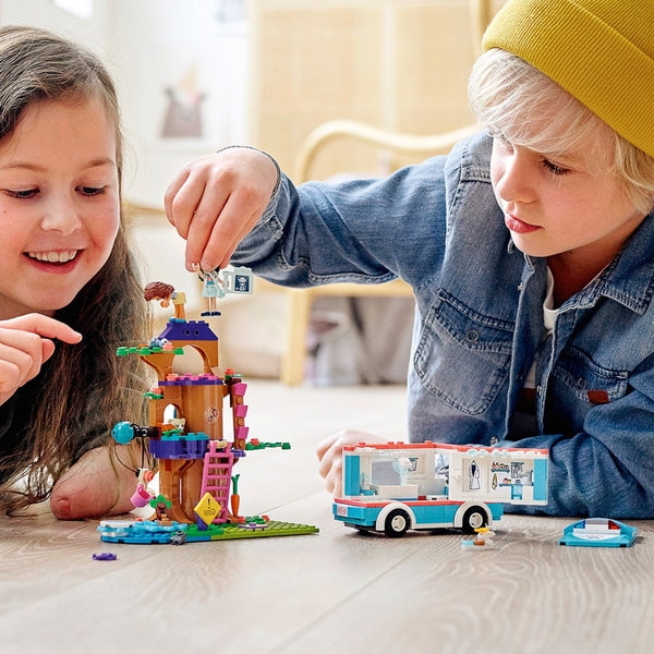 A ambulância tem um painel articulado para que haja fácil acesso para que a peça criativa de faz de conta continue lá dentro. Acessórios bonitos ajudarão as crianças a mergulhar na brincadeira de cuidar dos animais. Apresente as crianças ao mundo dos LEGO Friends, onde elas aprenderão que, ao trabalhar em equipe com seus amigos, sempre farão o trabalho.