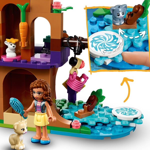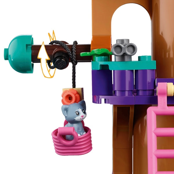 Com muitos iniciadores de jogo, este conjunto é perfeito para sessões de jogo diárias divertidas. As crianças podem explorar a casa da árvore do gato ou iniciar um resgate quando o gatinho cair no rio. Uma função de engrenagem legal transforma a água em corredeiras giratórias para aumentar o drama. As crianças podem baixar uma cesta para pegar o gatinho e salvar o dia!