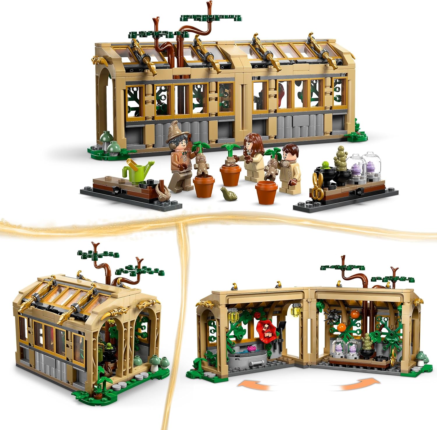- Um brinquedo para construir o Castelo de Hogwarts – Apresenta uma estufa que abre com plantas mágicas, 2 mesas removíveis, uma árvore através de uma janela "quebrada" e divertidos acessórios de jardinagem LEGO.