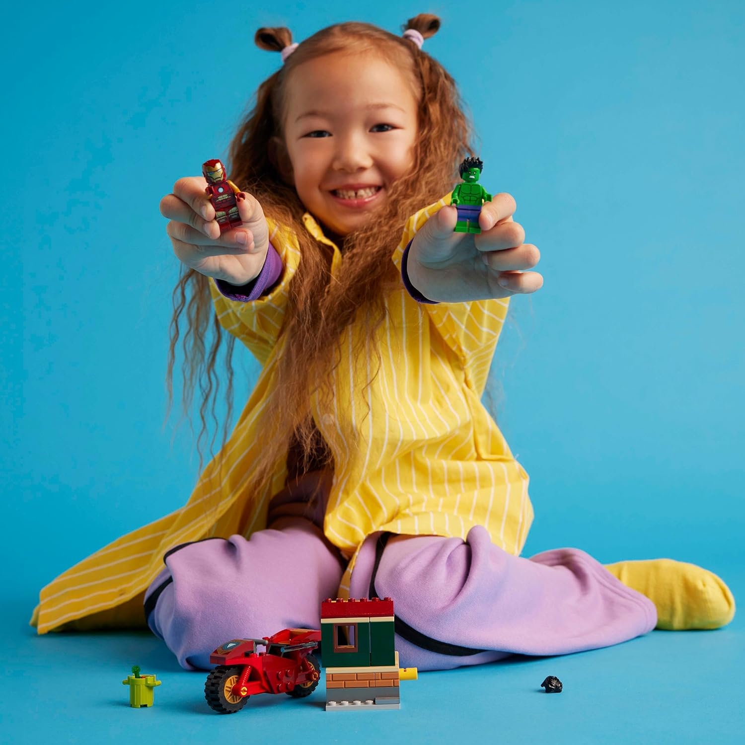 LEGO Marvel Homem de Ferro com bicicleta e Hulk, brinquedo de construção de super-herói para crianças, conjunto colecionável com veículo e minifiguras, presente para meninos e meninas de 4 anos ou mais