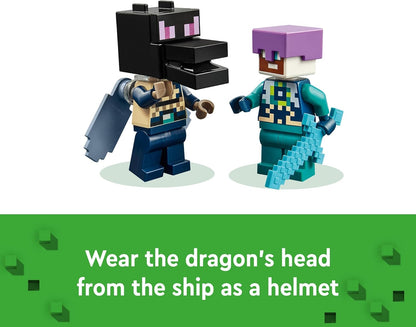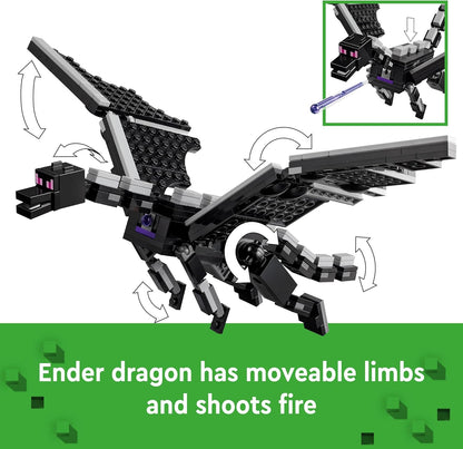 LEGO Minecraft The Ender Dragon e End Ship, brinquedo para meninos e meninas de 8 anos ou mais, apresenta uma figura de Enderman, conjunto de construção de videogame para jogo independente