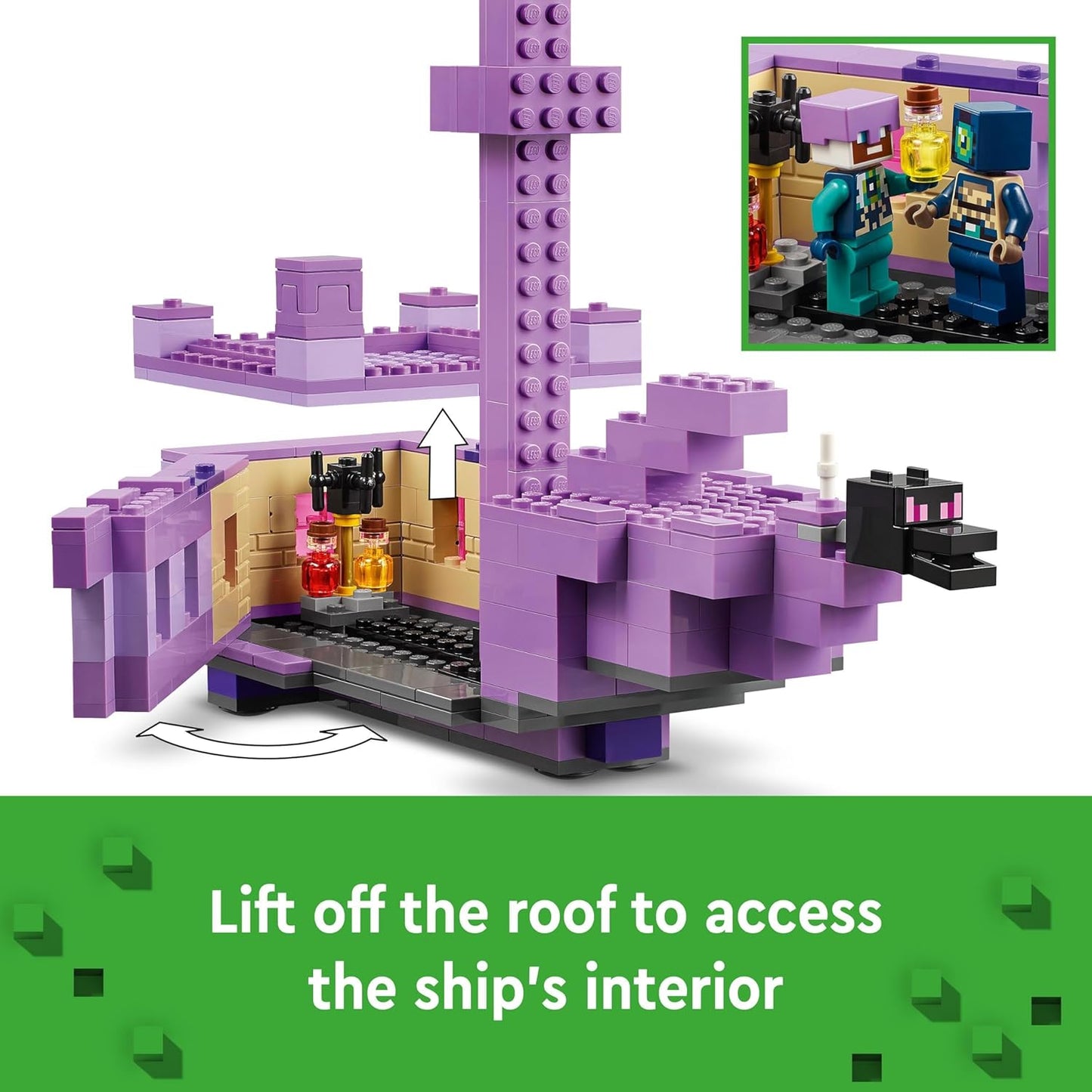 - The Ender Dragon e End Ship – Este brinquedo de videogame LEGO Minecraft para meninos e meninas com mais de 8 anos está repleto de personagens legais do Minecraft