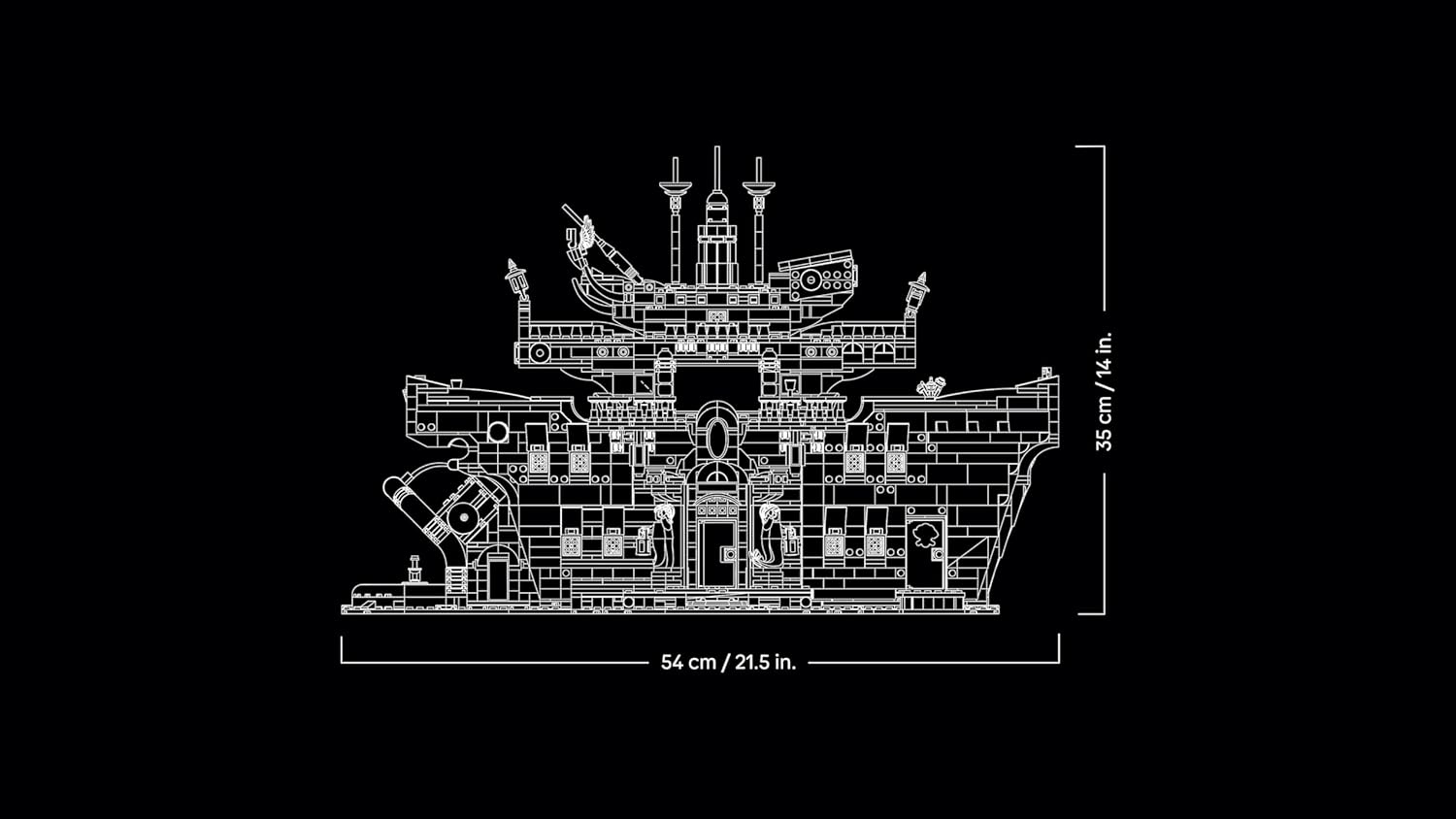 - Interior detalhado e acessível – O design em forma de navio deste conjunto de construção DIY contém muitos cômodos em seu interior, incluindo cozinha e sala de jantar, os aposentos de Zeff e a sala do tesouro.