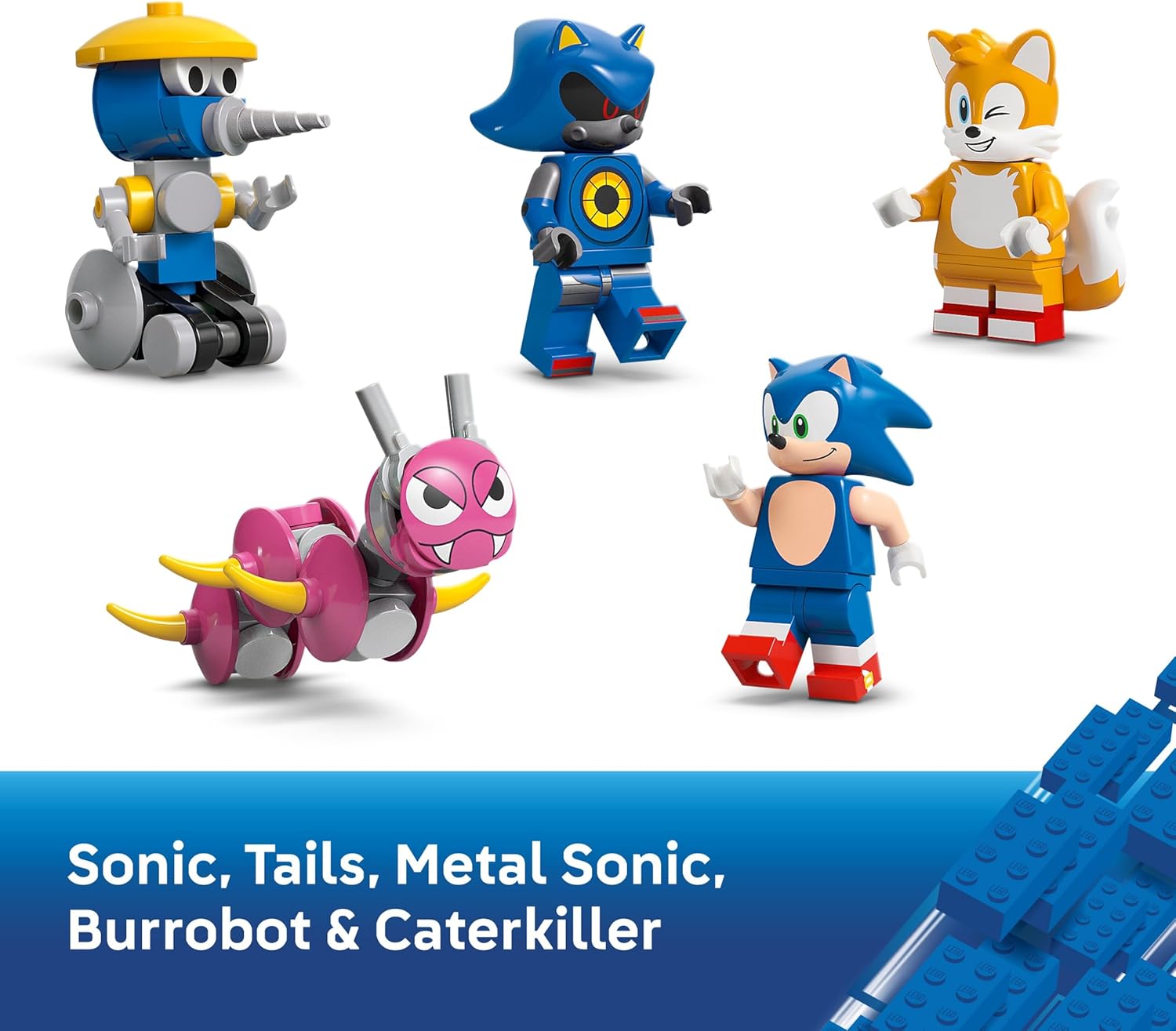 - Para fãs de brinquedos interativos – Inclui minifiguras LEGO do Sonic, Tails e Metal Sonic, figuras do Burrobot e Caterkiller e um caminhão de brinquedo com cabine, área de armazenamento e rampa para um quadriciclo.