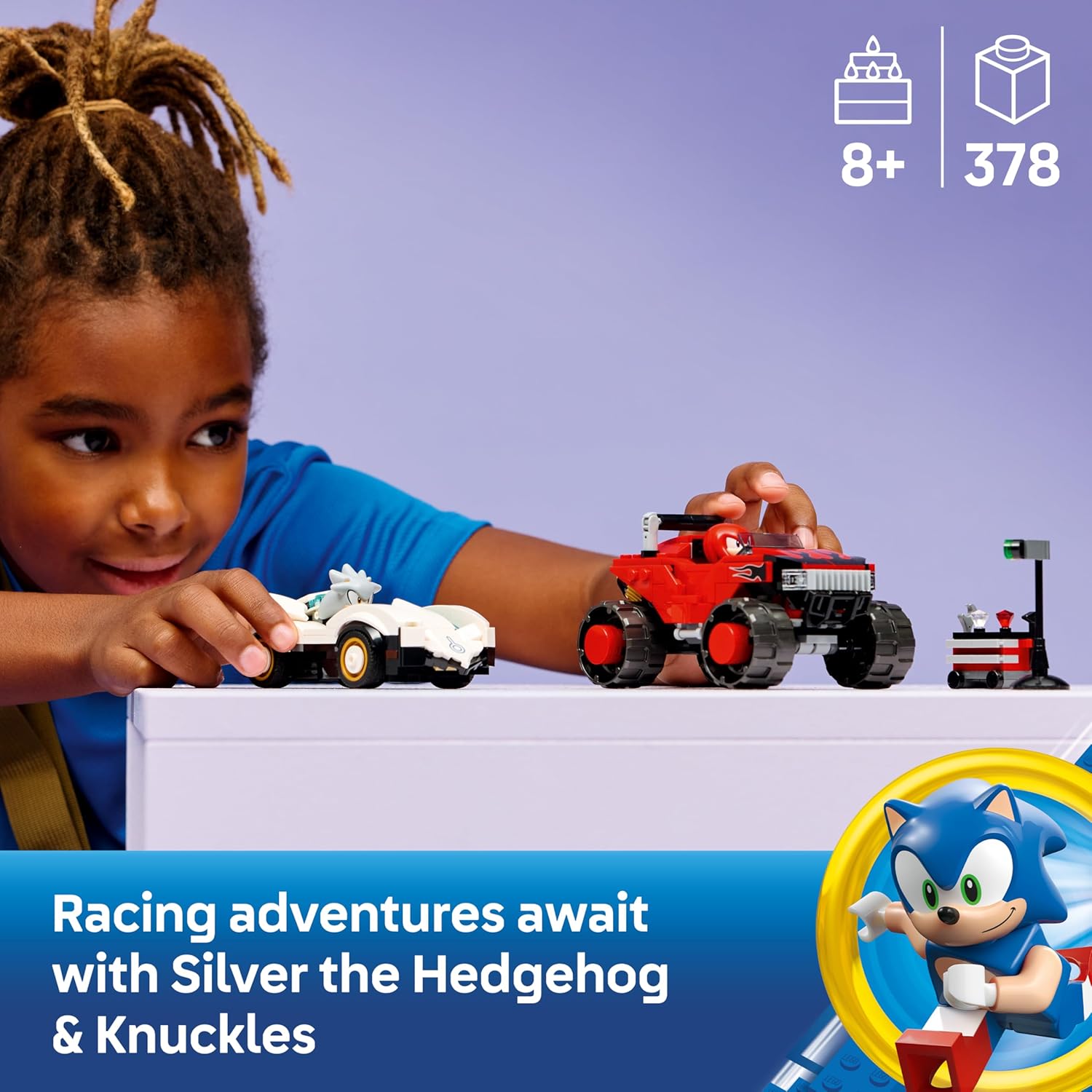 LEGO Sonic the Hedgehog Carro do Silver vs. Caminhão Monstro do Knuckles - Inclui 2 minifiguras e 2 Esmeraldas do Caos - Presente para crianças a partir de 8 anos - 77118