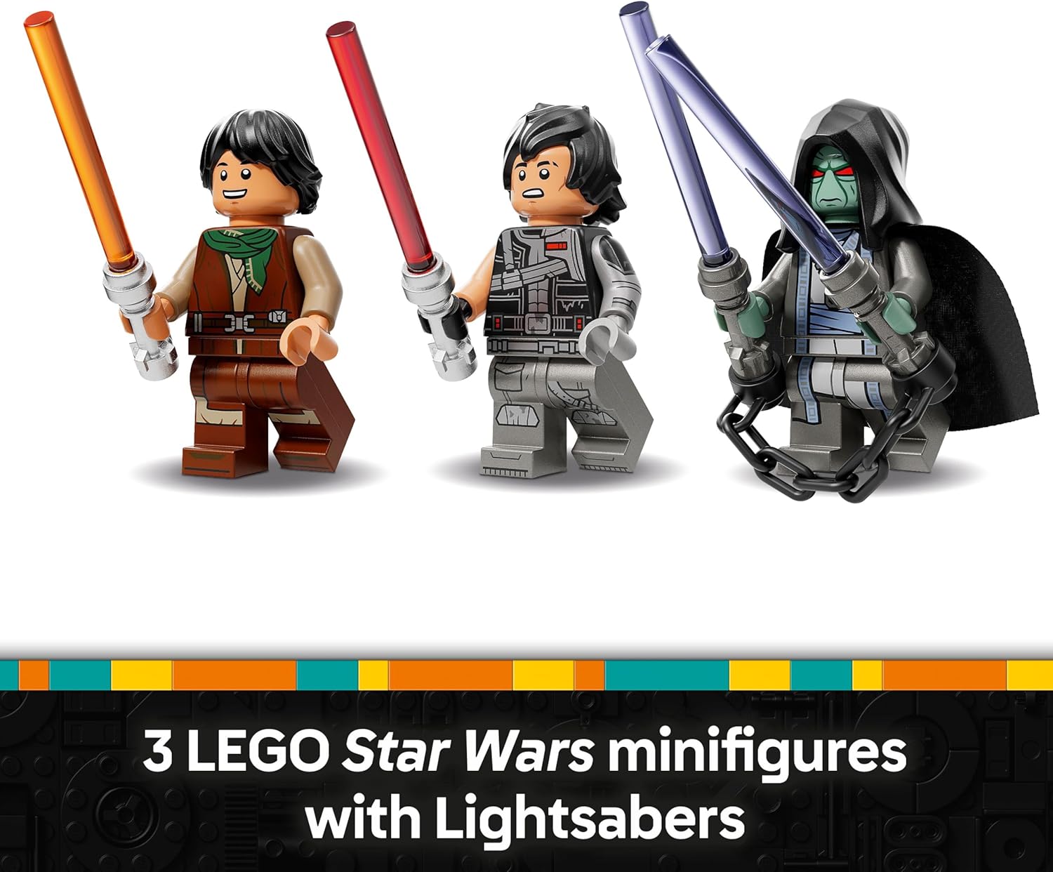 - 3 minifiguras LEGO Star Wars – O conjunto de construção apresenta Sig Greebling com um sabre de luz, Darth Dev com um sabre de luz e Solitus, que tem um sabre de luz duplo com corrente.