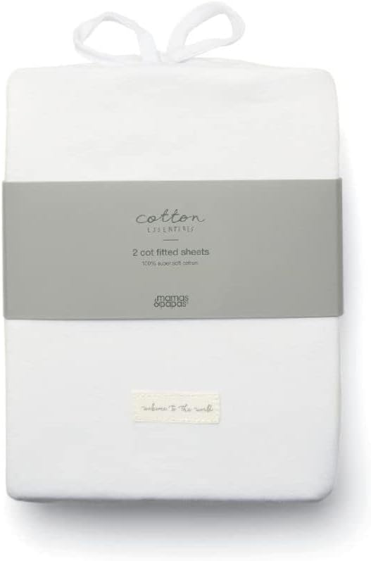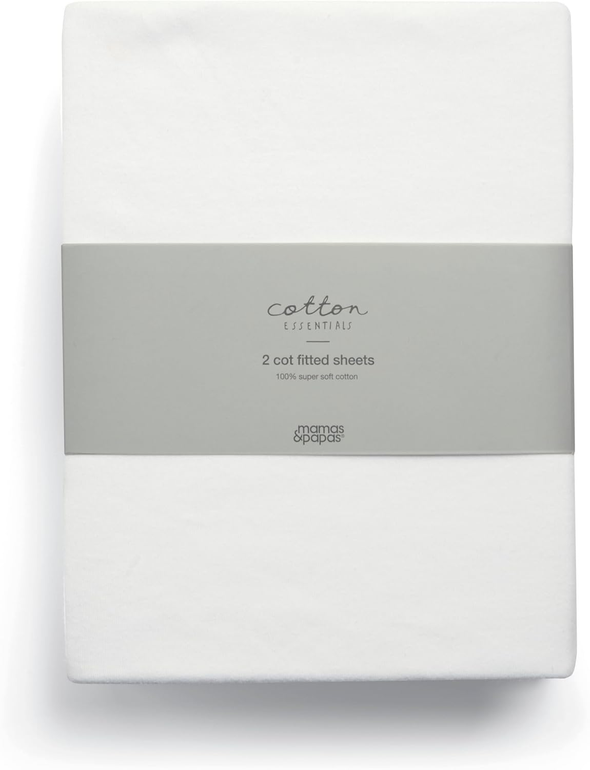 Lençóis com elástico para berço Mamas & Papas, pacote de 2, brancos (127 x 63 x 17 cm)