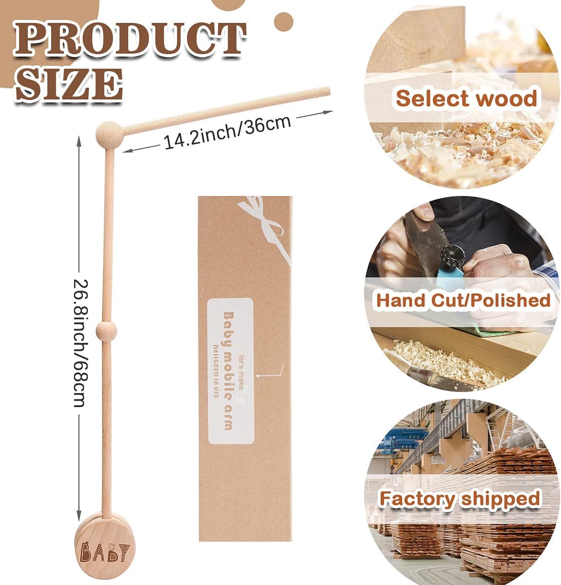 O pacote inclui: Eco faia - suporte móvel para bebê, braço e suporte + caixa de música + nome ou adesivos de aniversário 👍 NÃO MAIS PLÁSTICO - vamos fazer o braço móvel do bebê 100% faia natural sem qualquer metal!