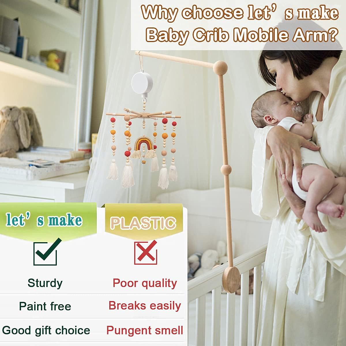 let's make suporte de madeira para berço móvel, cabides de faia de 30 polegadas com caixa de música rotativa, decoração de berçário, conjunto seguro e antiderrapante