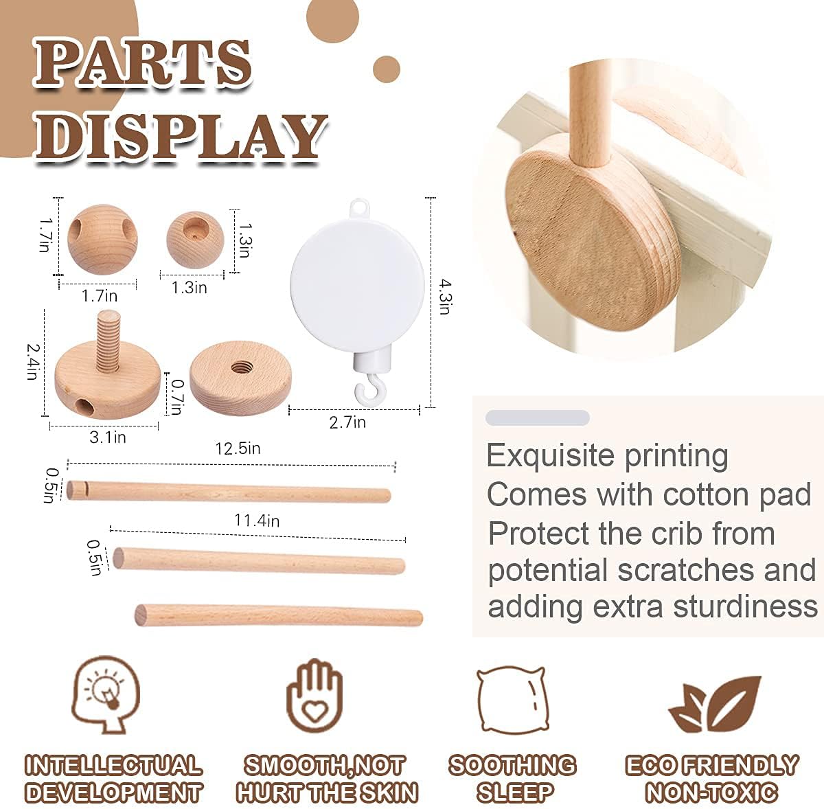 DESIGN DE GÊNERO MODERNO - A altura é de 30 pol. Cabe na maioria dos berços, decoração de berçário perfeita, caixa de música e adesivos gratuitos, bom ideal para qualquer conjunto de berço DIY