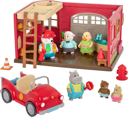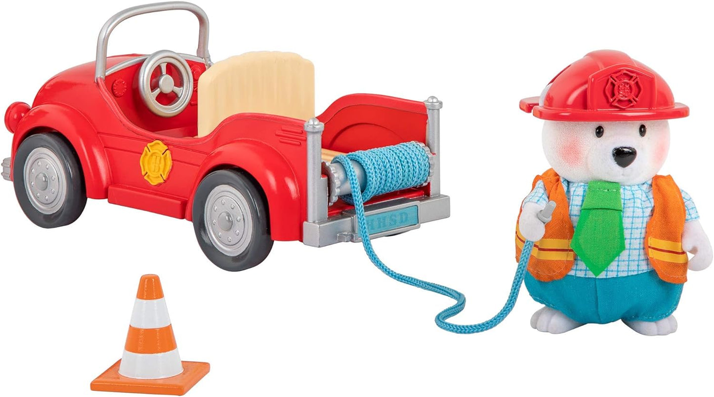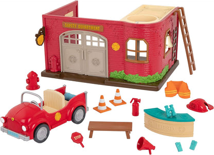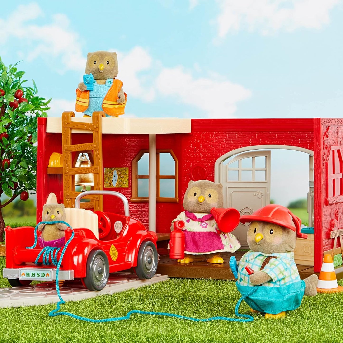 - Playset do Corpo de Bombeiros: Li’l Woodzeez Honeysuckle Hollow Safety Department com caminhão de bombeiros e acessórios