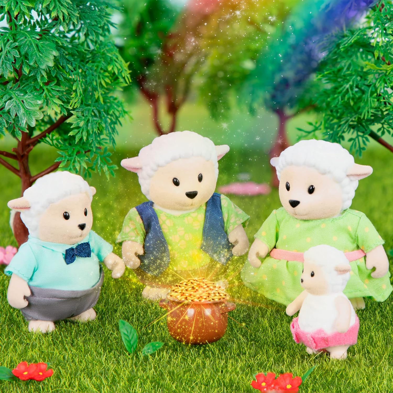 Li'l Woodzeez Família de ovelhas Snipadoodles - conjunto de brinquedos de 5 peças com estatuetas de animais em miniatura e livro de histórias - brinquedos e acessórios de animais para crianças a partir de 3 anos
