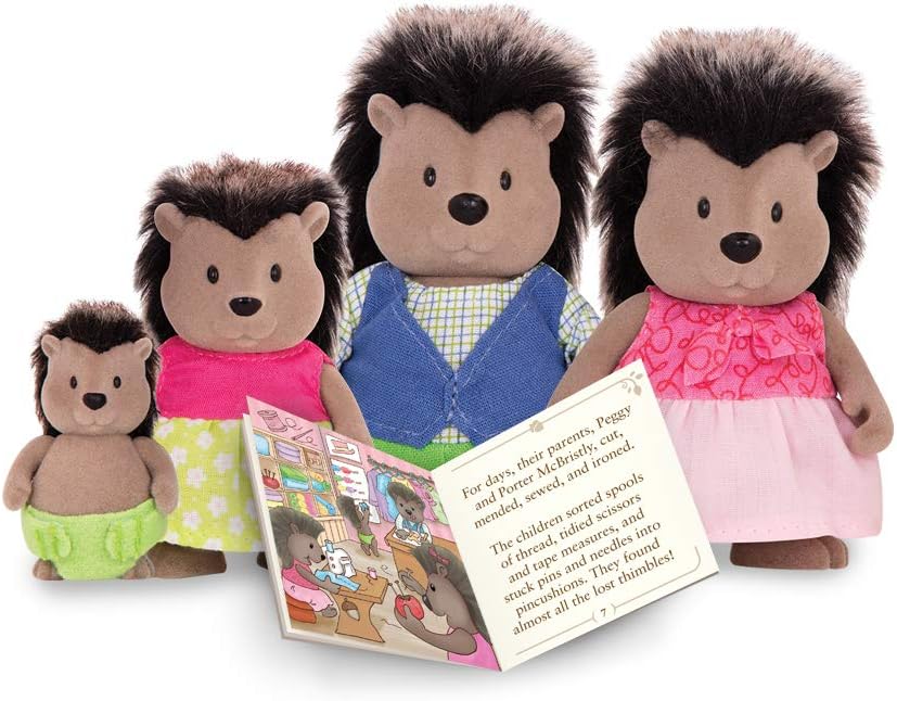 Li'l Woodzeez – Família McBristly Porcupine – Conjunto de brinquedos de 5 peças com estatuetas de animais em miniatura e livro de histórias – Brinquedos e acessórios de animais para crianças a partir de 3 anos