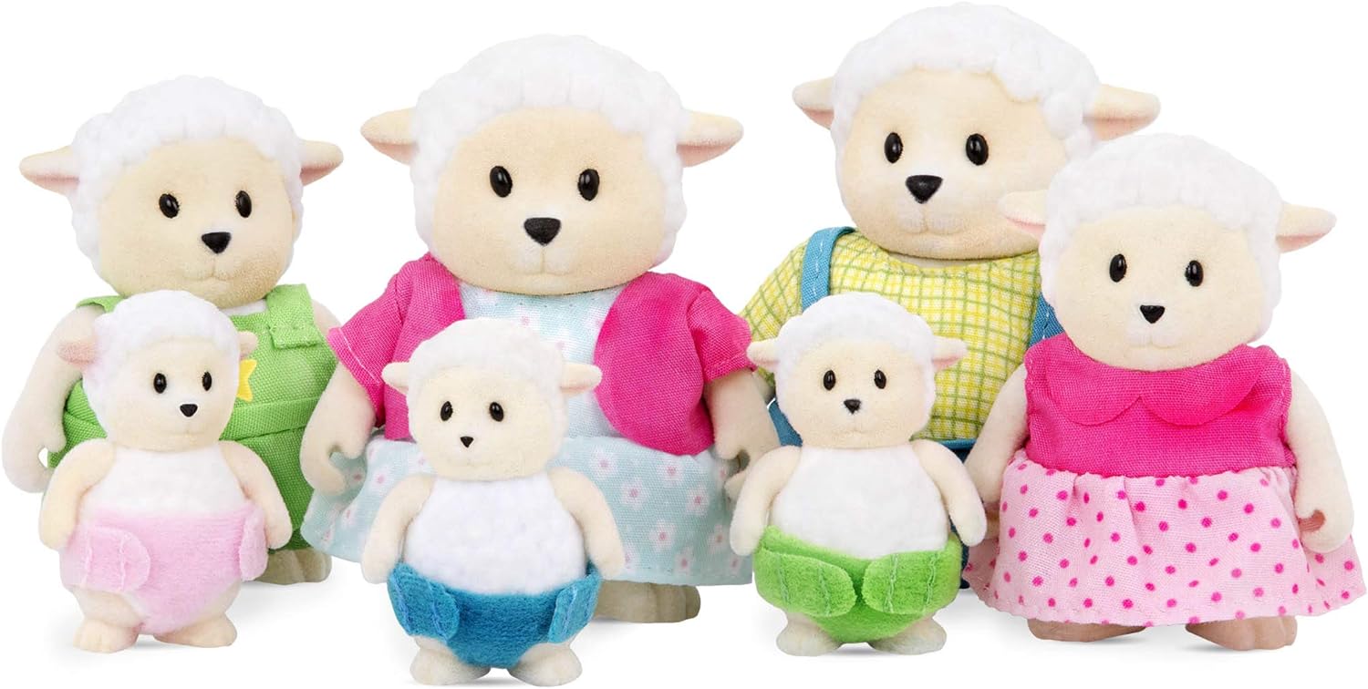 Li'l Woodzeez WZ6721Z Grandes Avós Curlycuddles Família de Ovelhas - Conjunto de 7 peças com estatuetas em miniatura - Brinquedos e acessórios de animais para crianças a partir de 3 anos, multicoloridos