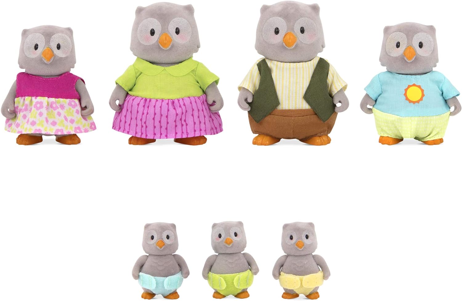 Li'l Woodzeez WZ6722Z Família de corujas Battat McHoot para avós grandes - conjunto de 7 peças com estatuetas em miniatura - brinquedos e acessórios de animais para crianças a partir de 3 anos
