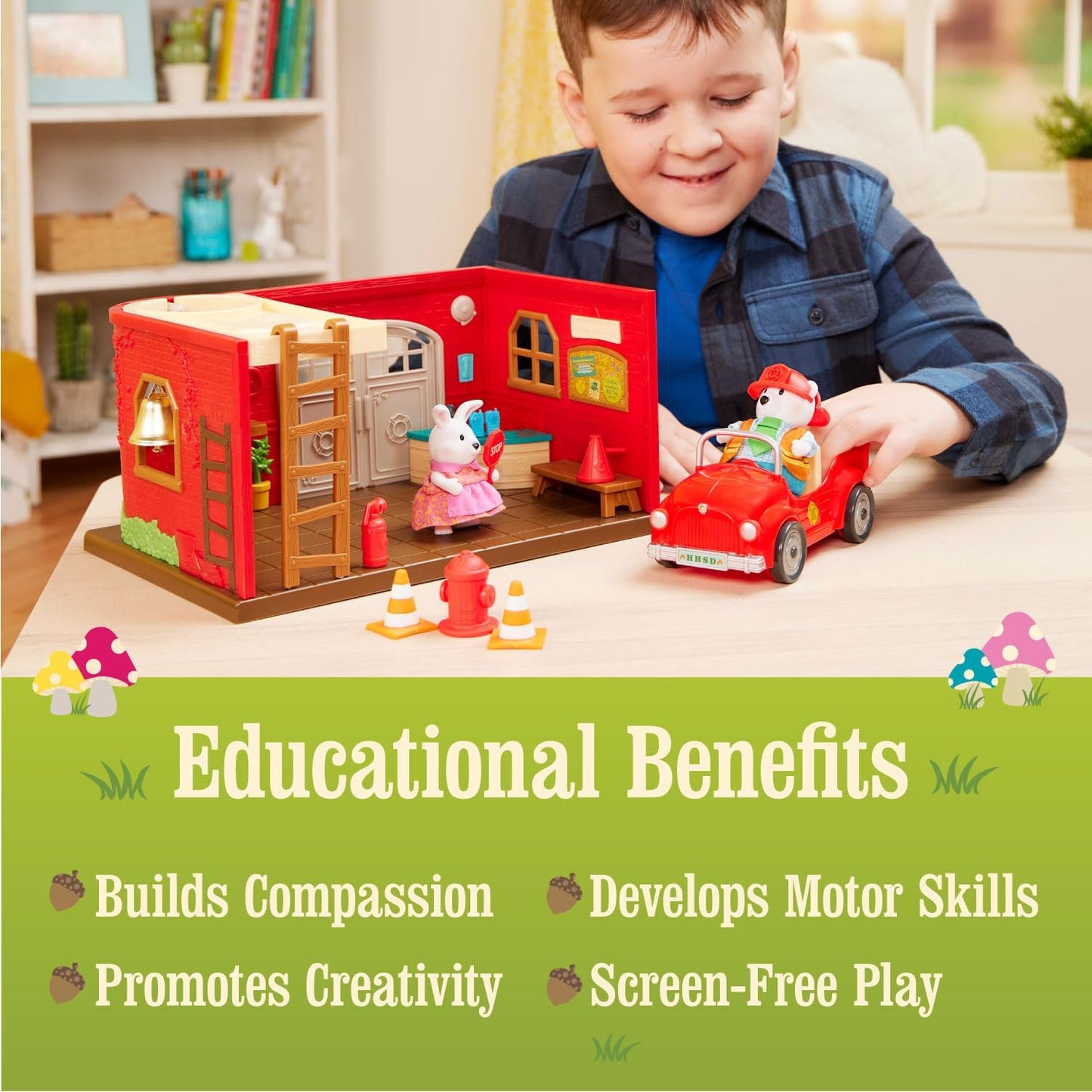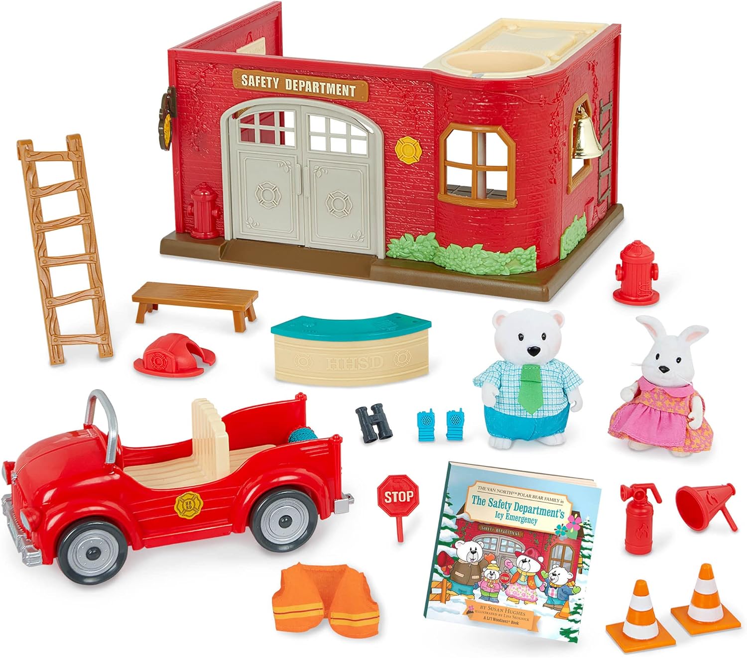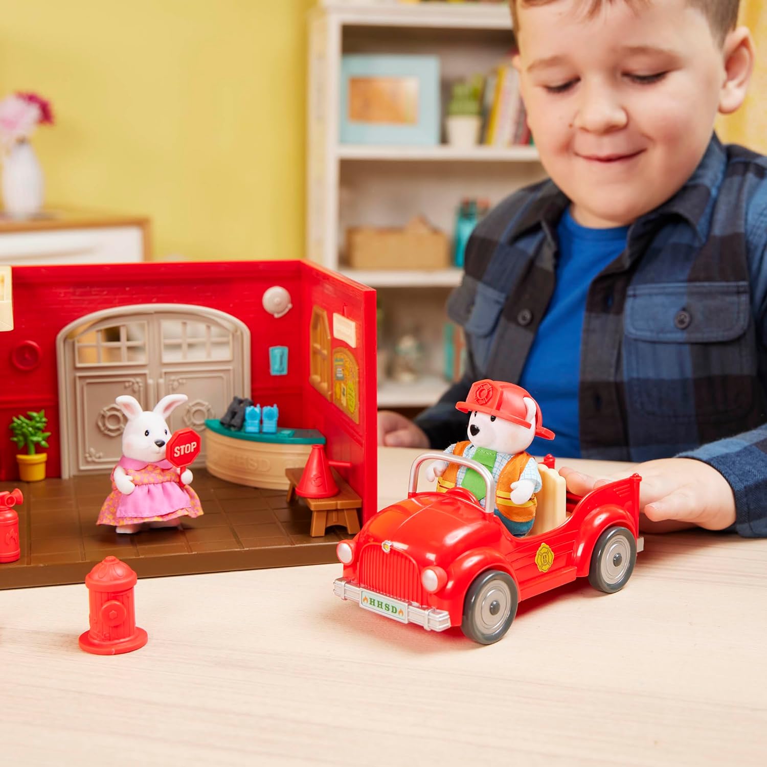 - Playset do Corpo de Bombeiros: Li’l Woodzeez Honeysuckle Hollow Safety Department com caminhão de bombeiros e acessórios.