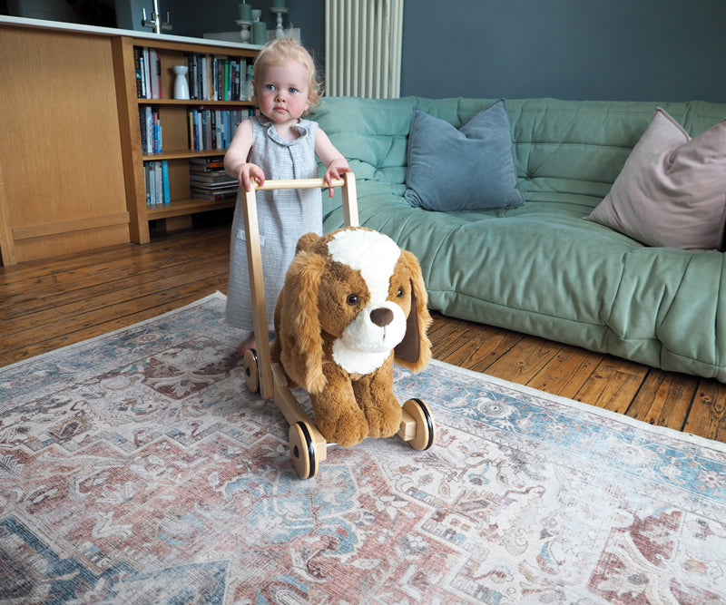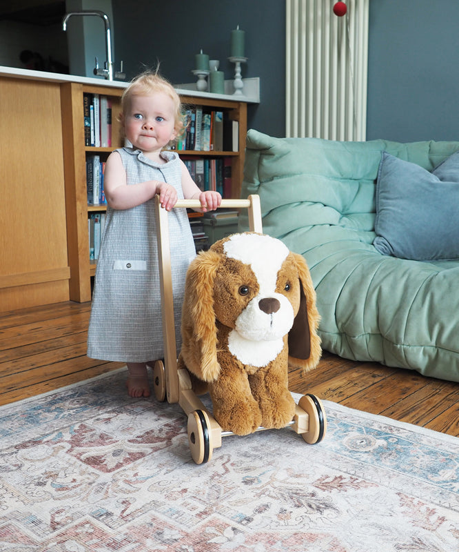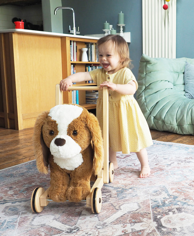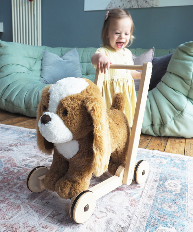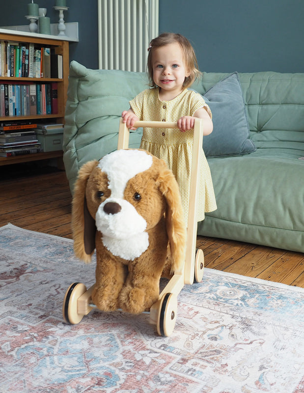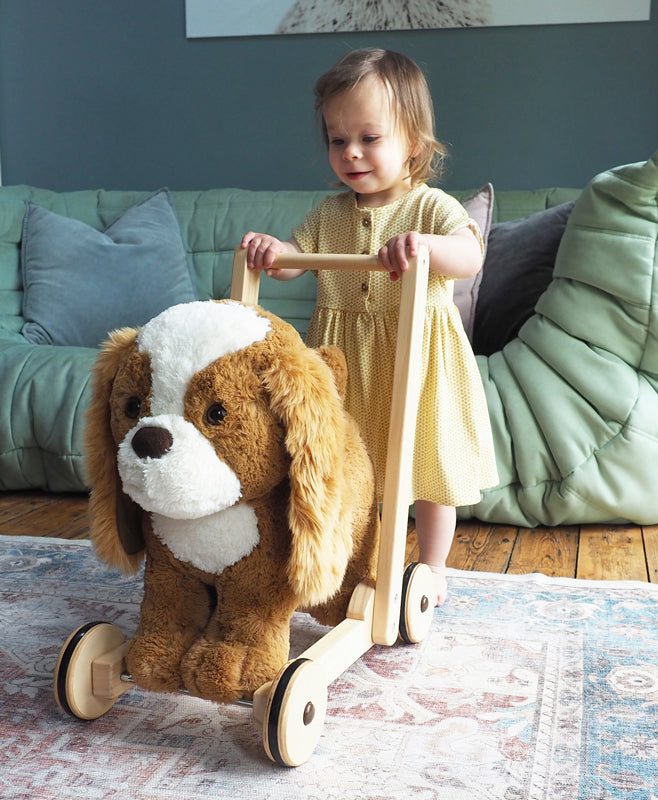 Com seu pelo macio e dourado e focinho fofinho, esse spaniel super fofo com certeza vai derreter o coração dos pequenos e se tornar um amigo leal. nas costas para subir e aproveitar o passeio!