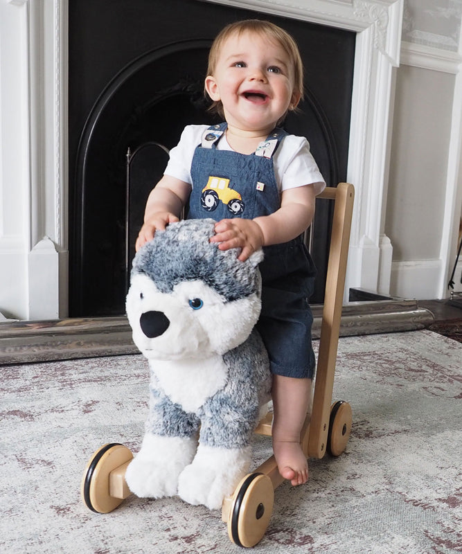 Com seu lindo casaco de pelúcia cinza prateado e branco, os pequenos vão adorar viver novas aventuras com o Mishka Dog. E quando suas perninhas se cansarem, eles podem subir, se aconchegar e aproveitar o passeio!
