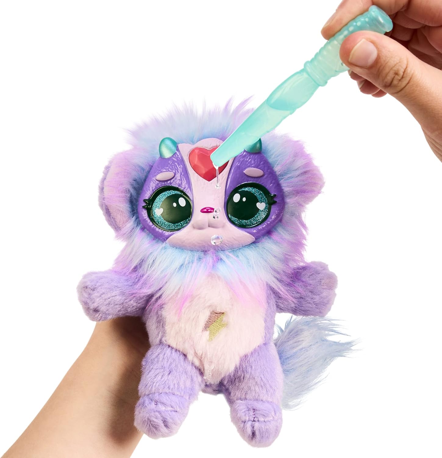 - Incline seu Magic Mixies Plushie para frente e para trás para ver o fogo Magic in the Gem em sua testa!