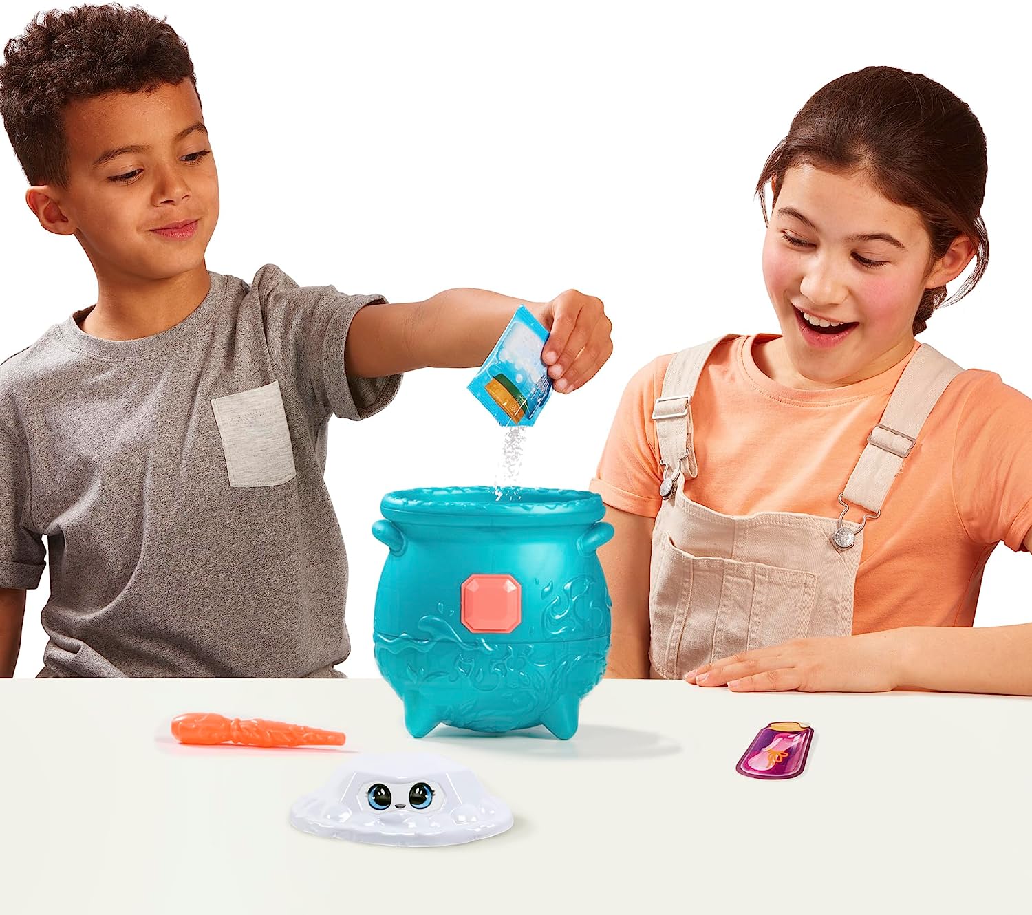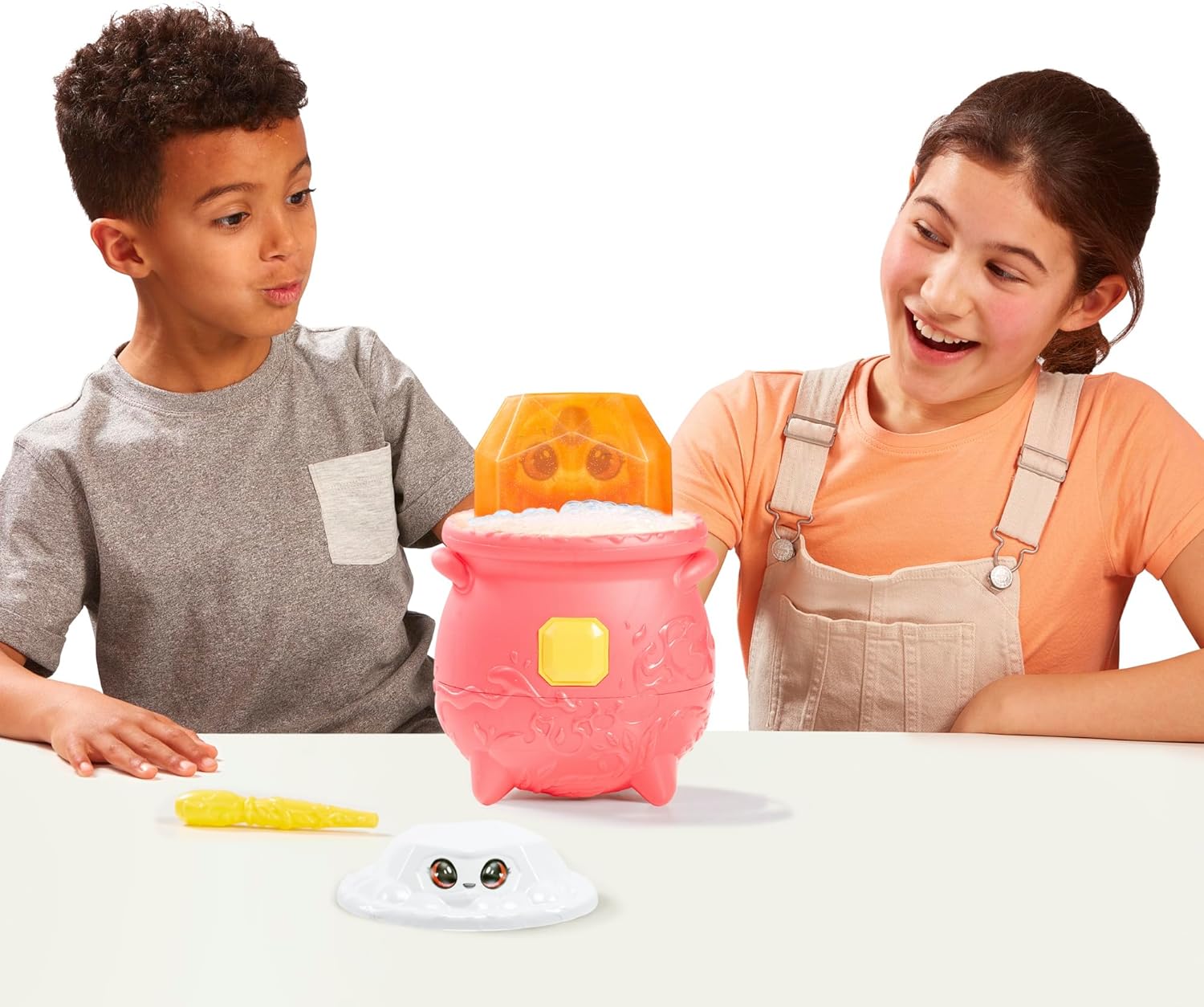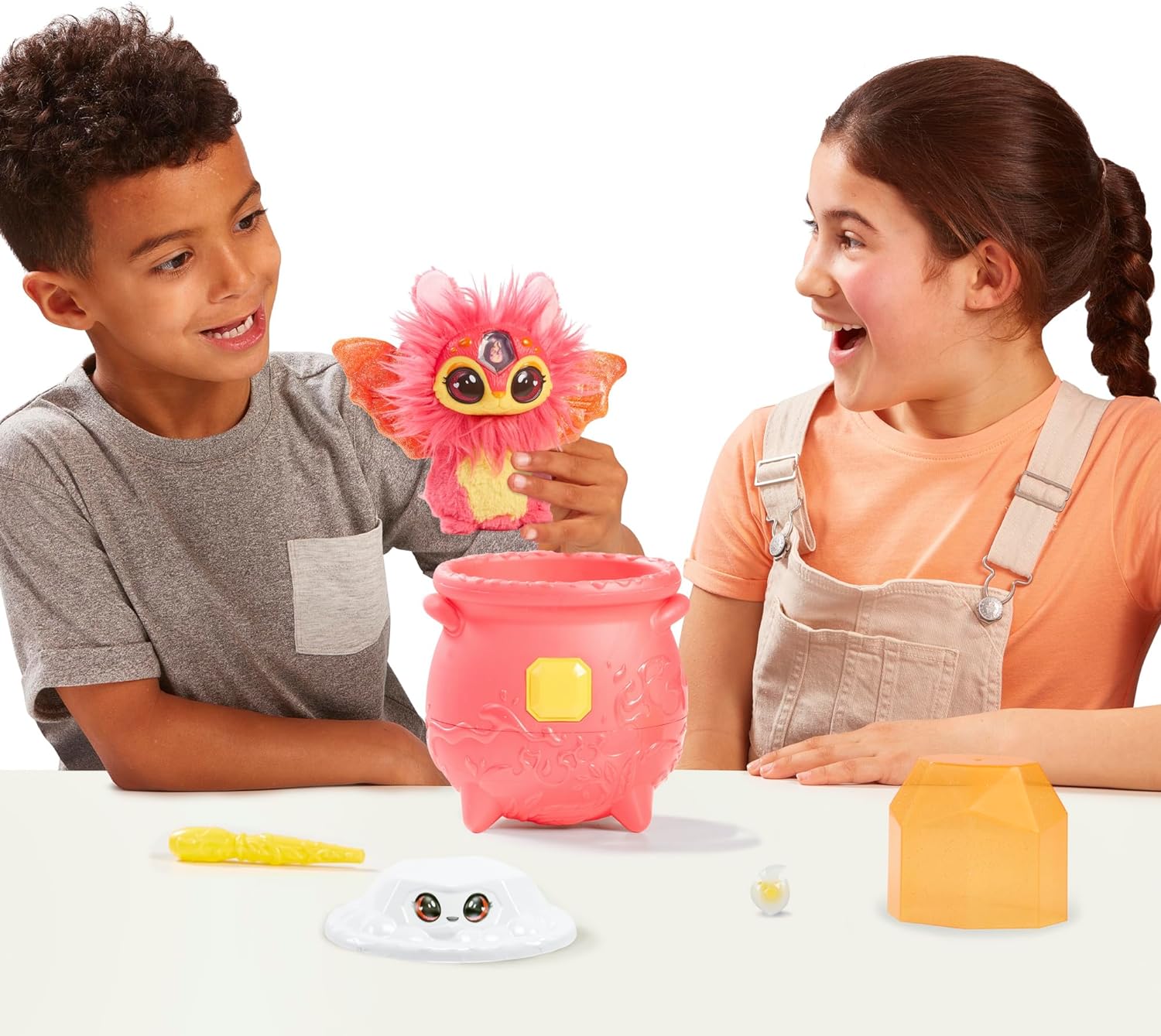 - Surpreenda-se quando uma joia aparece magicamente do seu caldeirão efervescente para revelar um Mixie Plushie de fogo e um Anel Mágico dentro!