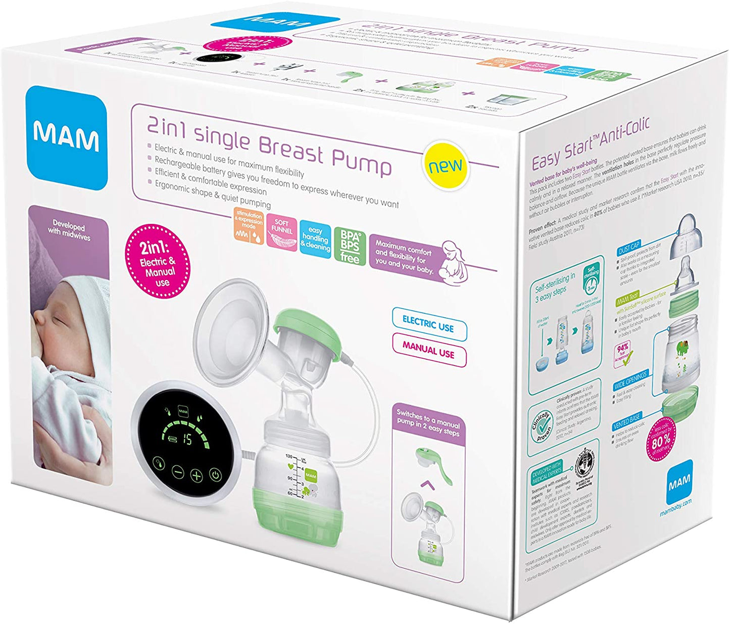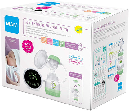 MAM Bomba tira leite elétrica simples 2 em 1, bomba de leite materno elétrica e manual de uso flexível