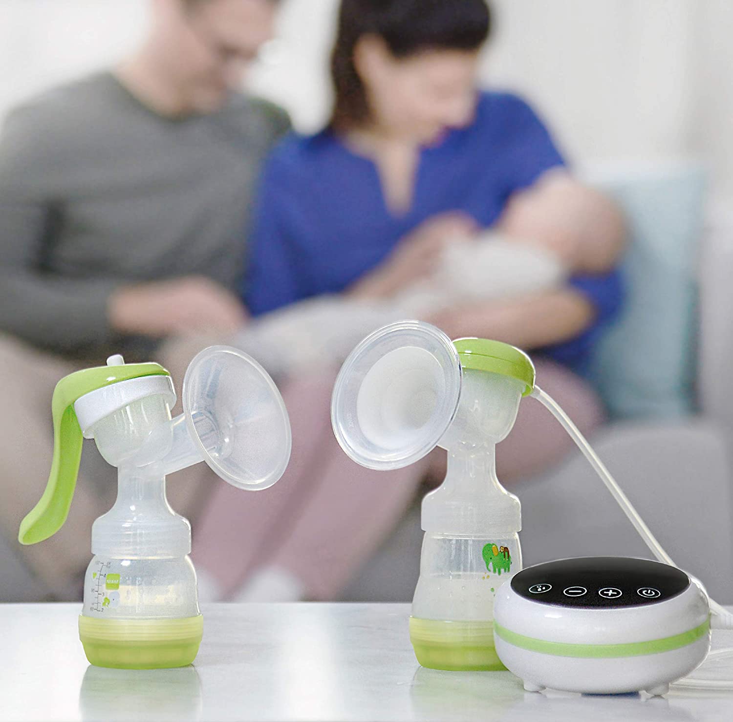 Detalhes do produto: Bomba tira leite única MAM 2 em 1, bomba tira leite elétrica e manual, amamentação, produtos essenciais para recém-nascidos, verde (os designs podem variar)
