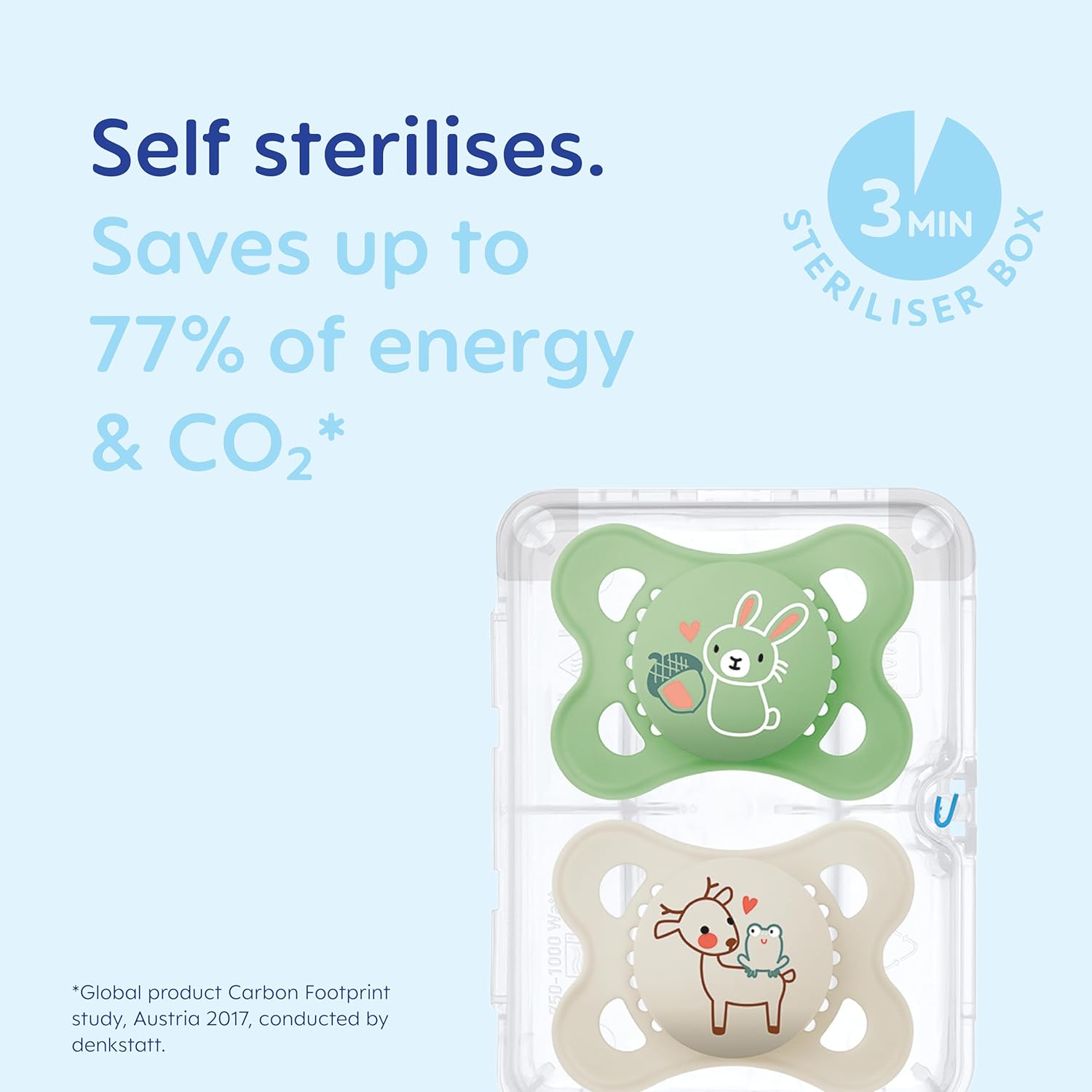 - Design amigo dos dentes: As chupetas MAM são desenvolvidas em colaboração com dentistas. Com a sua tetina MAM fina e simétrica, estas chupetas são especialmente amigas dos dentes