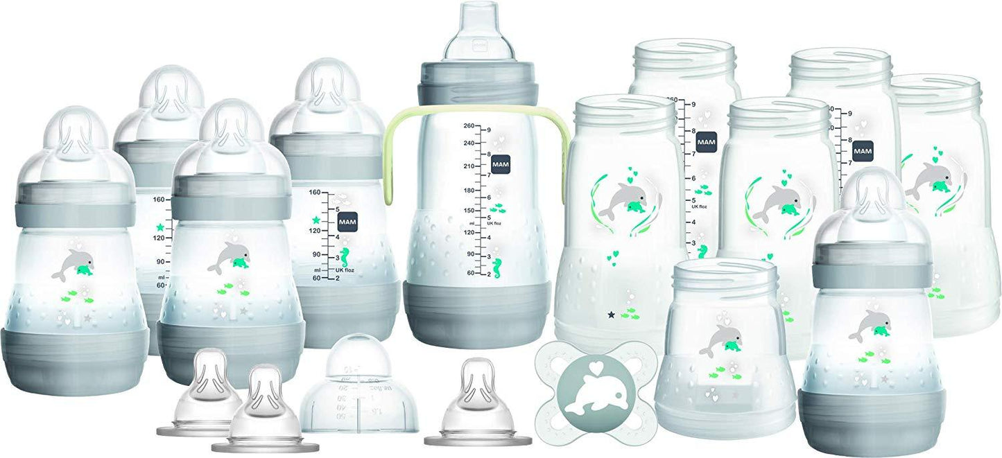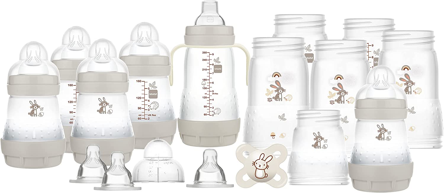 MAM Kit Grande - Mamadeiras Anti-Cólicas / Auto Esterilizáveis Cinza (17 itens)