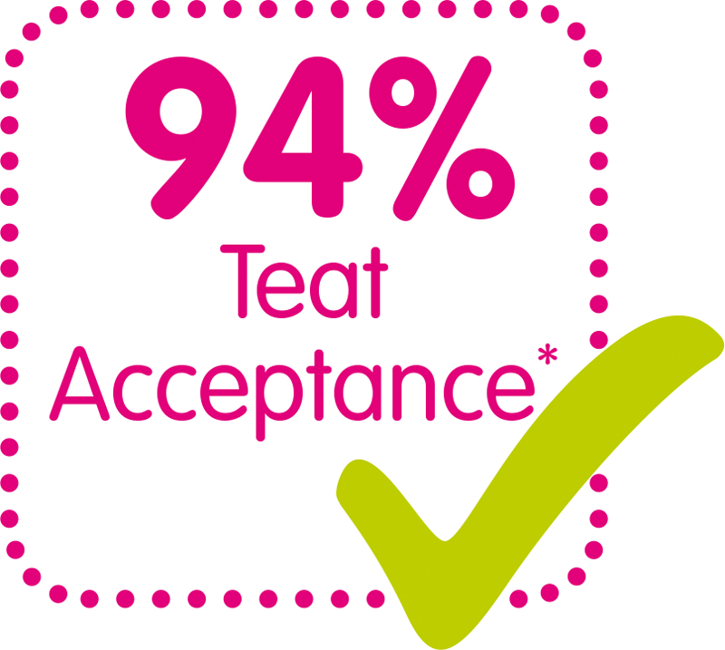 A tetina MAM SkinSoft® proporciona uma sensação familiar com uma orgulhosa taxa de aceitação de 94%* e é projetada com uma tetina de formato simétrico, garantindo que estejam sempre na posição certa.