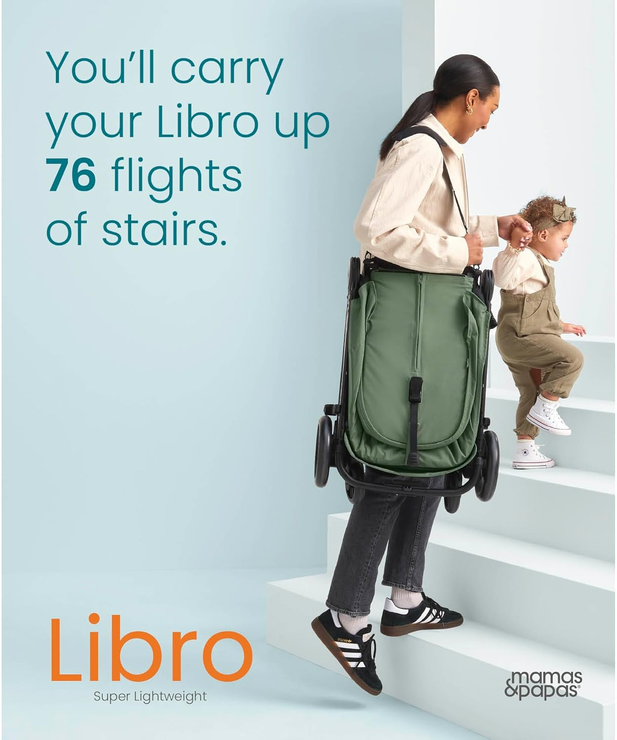 Mamas & Papas Libro, carrinho de viagem leve, dobrável com uma mão, arrumação compacta, assento reclinável, recém-nascido a 4 anos, verde-claro