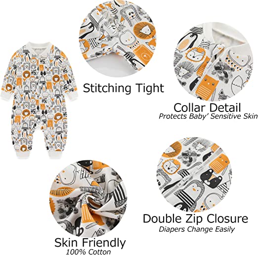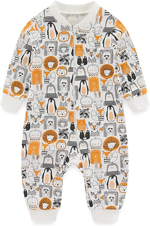 MAMIMAKA unissex para bebês Pijama recém-nascidos, pijama de algodão com zíper de 2 vias para dormir e brincar, pacote de 4,0 a 18 meses