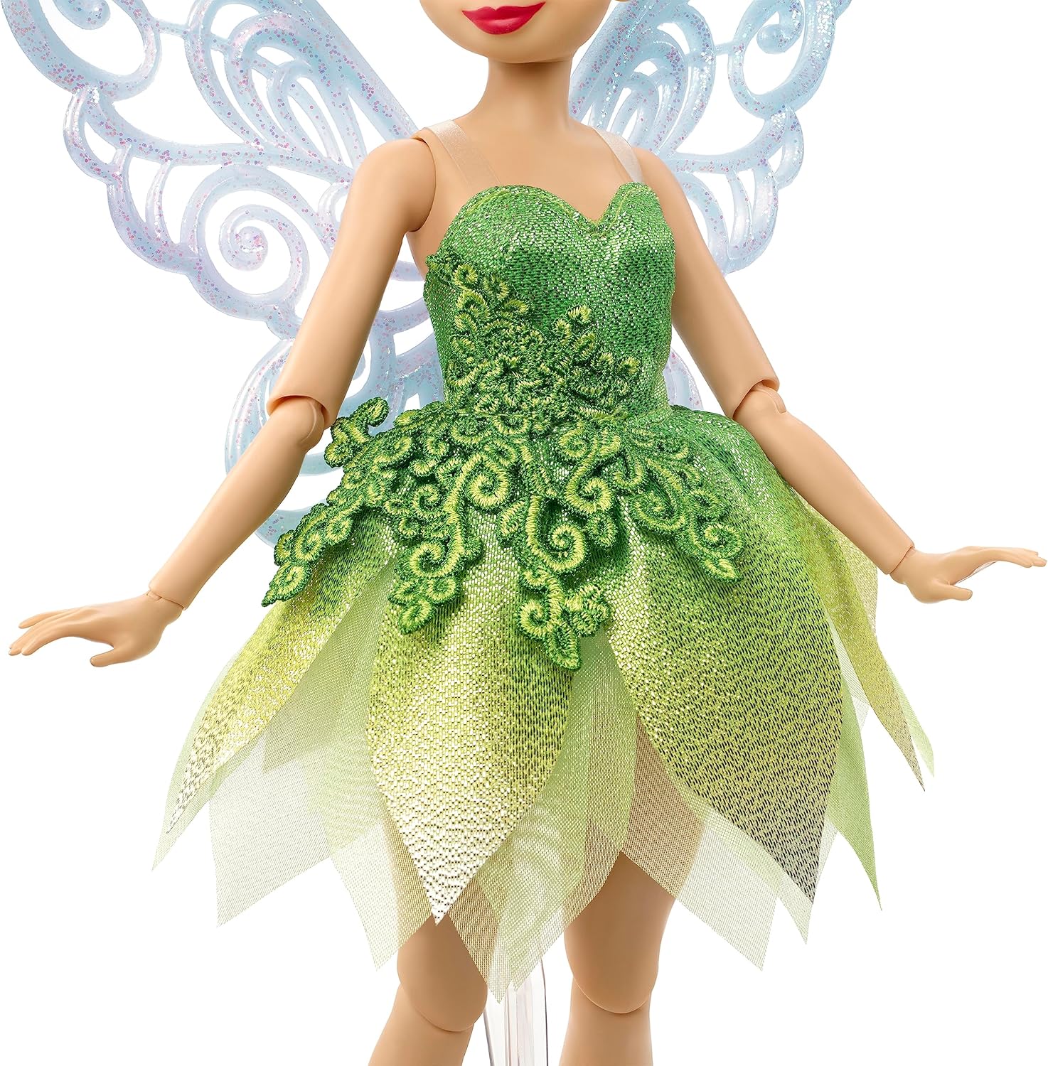 - Com um conjunto de asas detalhadamente detalhadas que parecem polvilhadas com pó mágico, Tinker Bell está pronta para aventuras na Terra do Nunca e além.