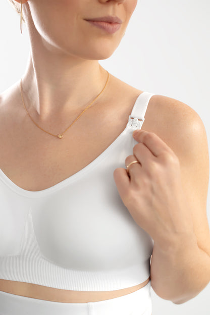 O Ultimate BodyFit Bustier da Medela é o soutien mais premium da marca, concebido para lhe proporcionar o melhor ajuste e suporte durante a gravidez e amamentação. Ele é projetado com uma tecnologia de copa moldada superior e zonas de malha canelada de suporte que se adaptam perfeitamente ao seu corpo em mudança.